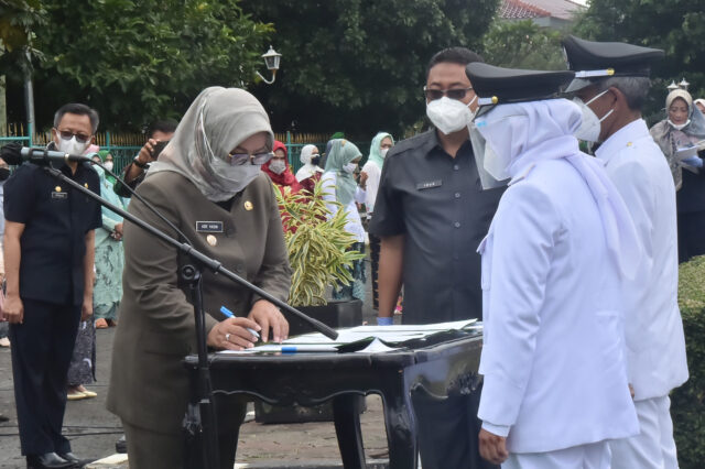 Bantenone – CIBINONG – Bupati Bogor, Ade Yasin, lantik 88 Kepala Desa (Kades) terpilh masa bakti tahun 2021-2027. Pelantikan dilaksanakan diruang terbuka di Lapangan Tegar Beriman, Jumat 5/2/ 2020. Ia meminta seluruh Kades terpilih untuk segera berlari kencang melaksanakan program kegiatan pembangunan desa. Terlebih akan adanya program Satu Milyar Satu Desa (SAMISADE) sebagai upaya akselerator pemulihan sosial dan perekonomian desa disaat pandemi.