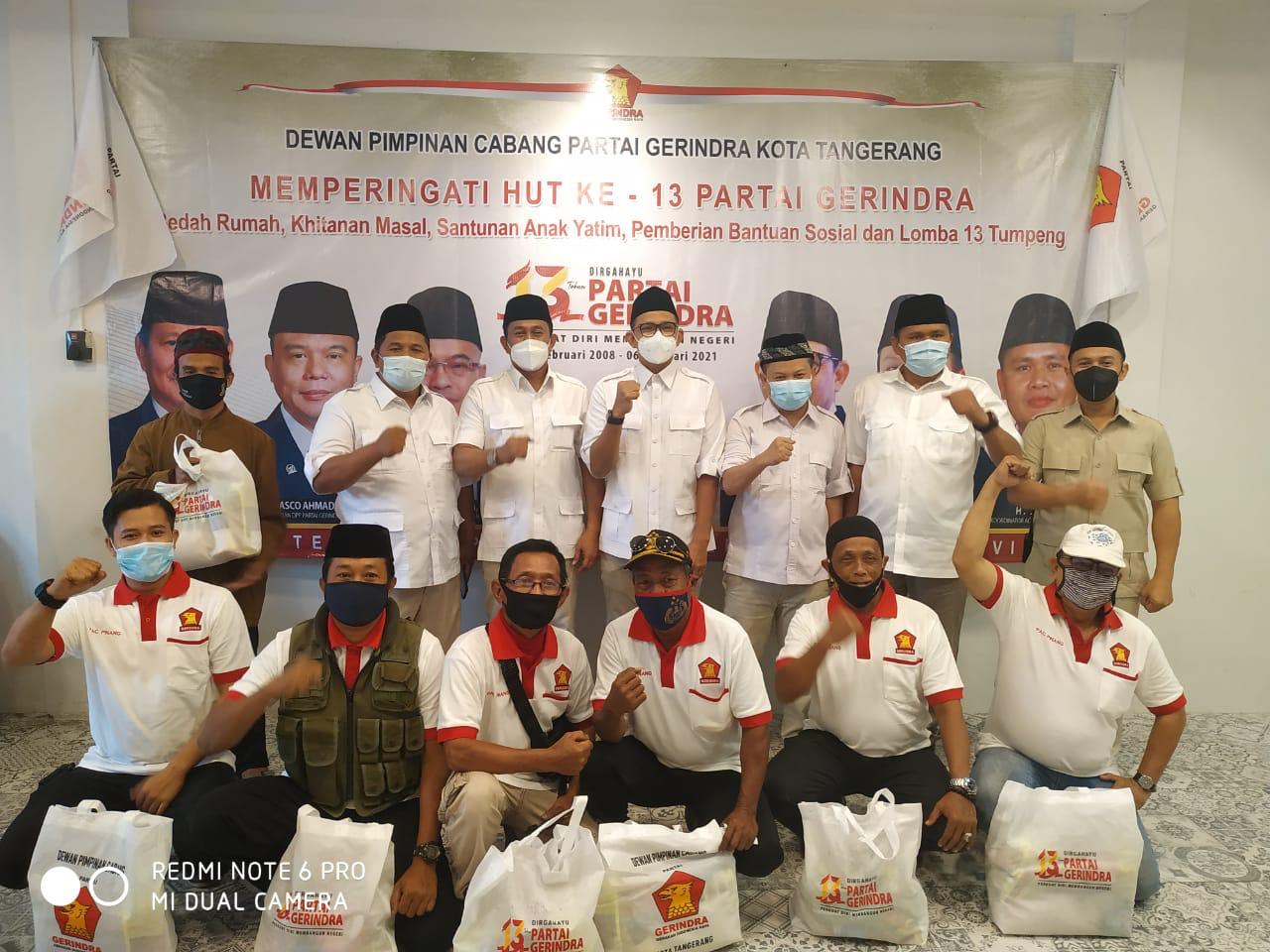 BantenOne. Tangerang – Partai Gerakan Indonesia Raya yang lebih dikenal dengan Gerindra merayakan HUT-nya yang ke-13. Berbagai rangkaian acara digelar serentak di seluruh DPC yang ada di Indonesia menyemarakan HUT Gerindra dengan tetap menerapkan protokol kesehatan. Begitu juga dengan Gerindra DPC Kota Tangerang yang turut memeriahkannya dengan beberapa rangkaian acara.