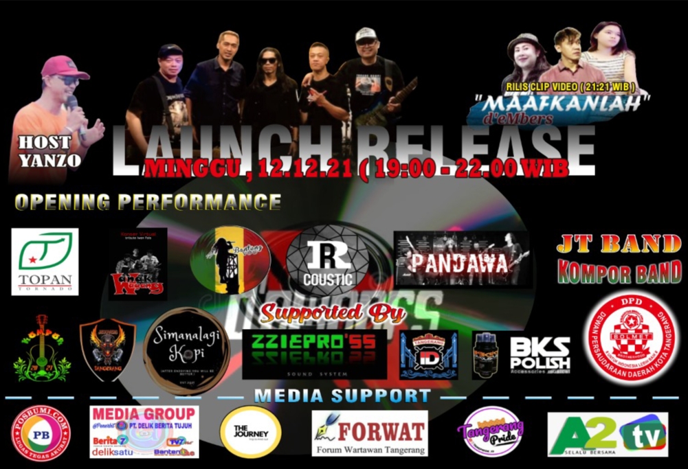 BantenOne–JAKARTA BARAT- Hadirnya para musisi lokal dan komunitas di Jln. Kemuning Raya. Cengkareng Barat. Jakarta Barat cukup meriah menggemparkan Cafe Simanalagi. Hal itu terjadi karena adanya Launching Singel D’eMbers dengan judul “Maafkanlah, Minggu (12/12/2021)