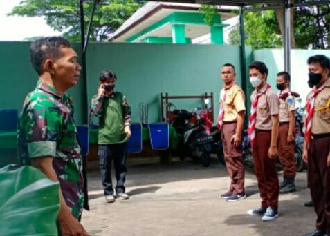 BantenOne.com-Tangerang-Kodam Jaya, Tangerang – Anggota Koramil 05/Ciputat Kodim 0506/Tgr melakukan kaderisasi saka Wira Kartika di Kampung Pancasila di Jalan KH Dewantoro Kelurahan Ciputat Kecamatan Ciputat Kota Tangsel, Rabu (16/01/2022).