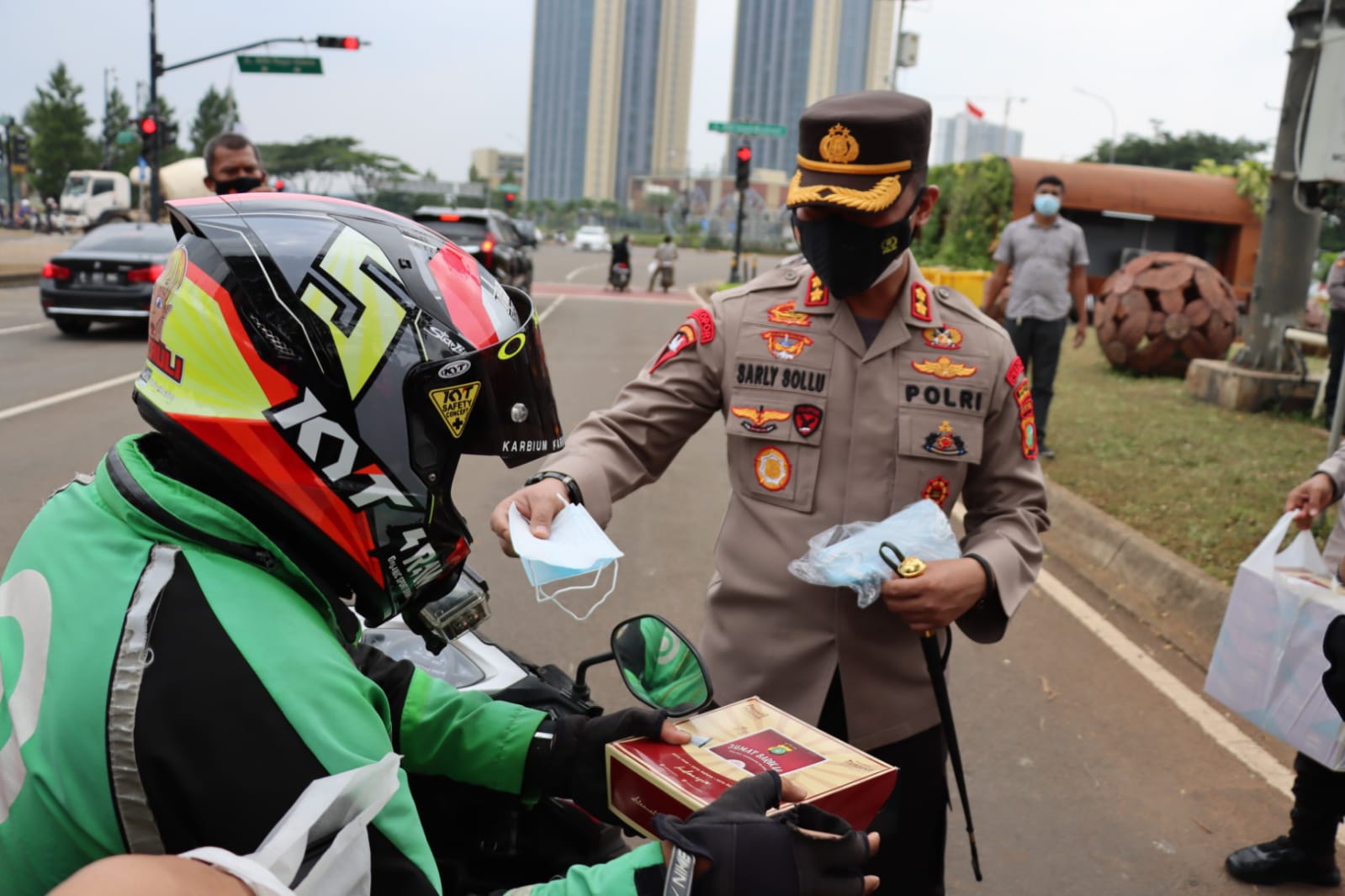 Dipimpin langsung AKBP Sarly Sollu, S.I.K., M.H. (Kapolres Tangerang Selatan), kegiatan Jum’at barokah kali ini membagikan 200 nasi box yang diikuti juga oleh Ketua Cabang Bhayangkari Tangerang Selatan.