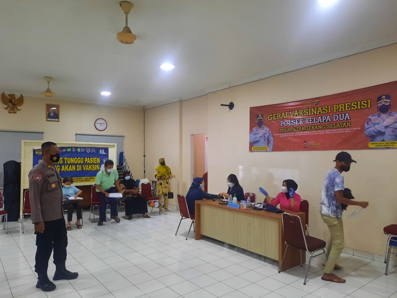 BantenOne.Com , Tangerang Selatan-Dalam Rangka Perkuat Akselerasi Vaksinasi Nasional, Polsek Kelapa Dua menggelar Vaksinasi Presisi Dosis 1, 2 dan 3 (Booster) untuk Warga masyarakat dengan membuka Gerai Vaksinasi Presisi di Aula Polsek Kelapa Dua, pada Rabu sekitar Pukul 08.30 Wib s/d selesai. (23/03/22)