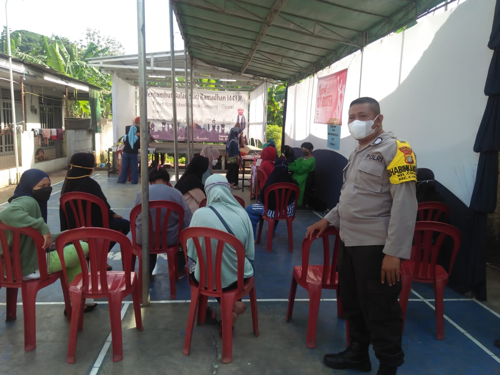 Kapolsek Ciputat Timur Kompol A. Yulianto menyampaikan untuk rangkaian kegiatan pada Bulan Suci Ramadhan ini telah dilakukan vaksinasi 1, 2 dan 3 (Booster) untuk warga masyarakat hari ini dengan target sebanyak 200 orang dan sudah tervaksin hari ini sebanyak 200 orang, sebelum di vaksin dilakukan Test kesehatan terlebih dahulu.