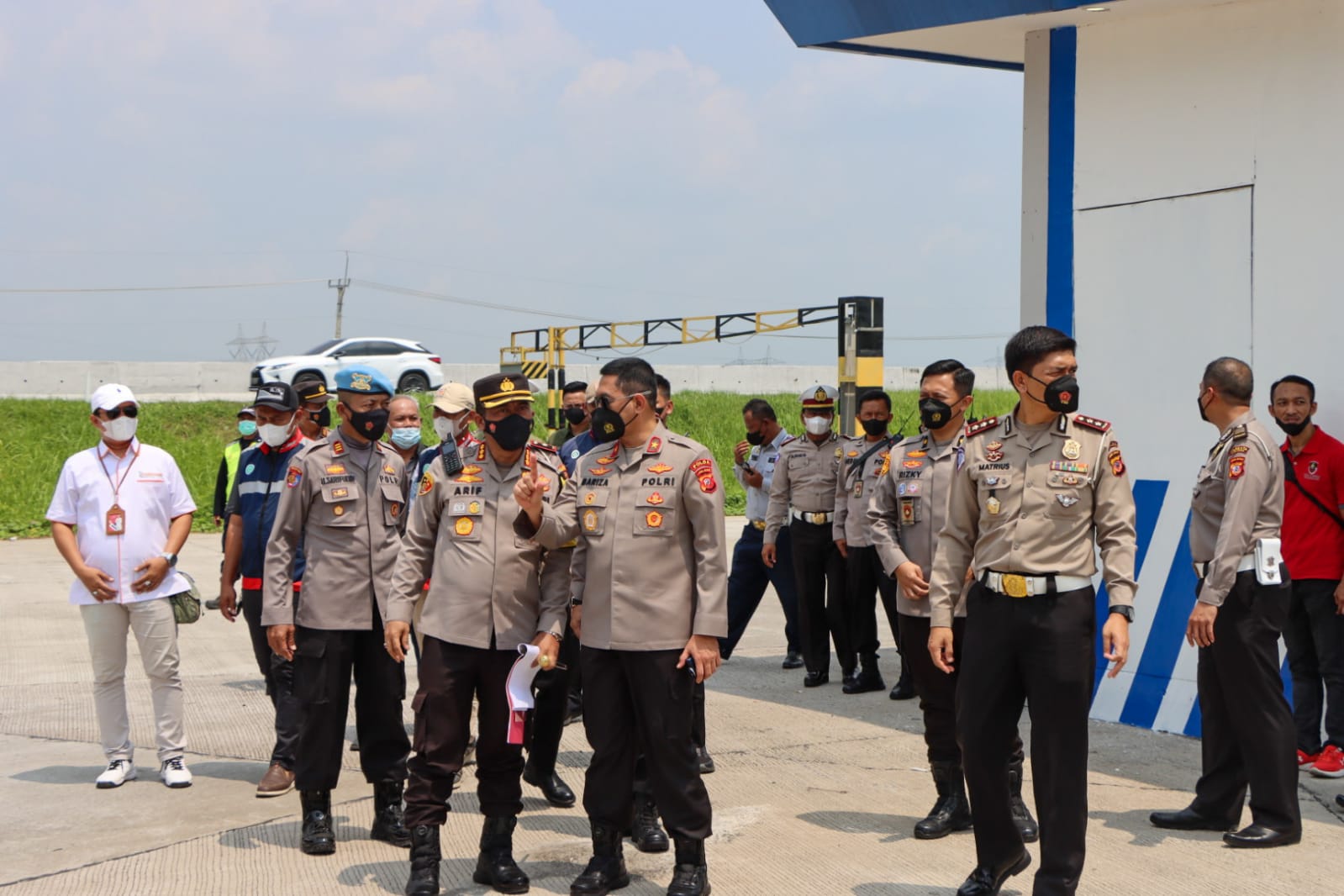 Kedatangan Wakapolda Jabar, Brigjend Polisi Bariza Sulfi, S.I.K, beserta Karo Rena Polda Jabar Kombes Polisi I Bagus Rai Elryanto, S.H, S.I.K, M.H, dan Wadir Lantas AKBP Matrius, S.I.K, M.H, diterima langsung oleh Kapolresta Cirebon, Kombes Polisi Arif Budiman, S.I.K, M.H, didampingi Kabag Ops Polresta Cirebon, Kompol Purnama, S.H, M.H, Kasat Lantas Polresta Cirebon, Kompol M. Alan Haikel, SKM, S.I.K, M.I.K, Kapolsek Pabedilan, Akp Supai Warna, S.Sos., Kasi Propam Polresta Cirebon Akp Ujang Saripudin, S.H, perwira staf Sat Lantas Polresta Cirebon, dan perwakilan pengelola Rest Area 228A.