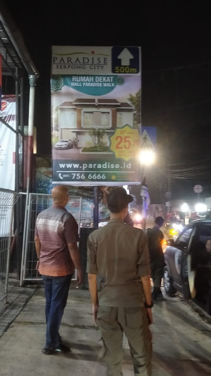 “Anggota kami berhasil menertibkan kembali reklame non permanen di dua Kecamatan Setu dan Serpong, hasilnya sebanyak ratusan spanduk liar kami bersihkan dari beberapa titik yang terpantau,” Kata Muksin