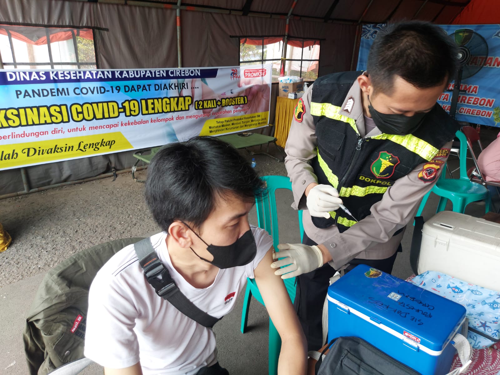 BantenOne.com – POLRESTA CIREBON – Dua Hari Pasca Hari Raya Idul Fitri 1443H, Polresta Cirebon telah siap untuk mengamankan arus balik yang aman dan sehat , seksi Dokkes Polresta Cirebon Polda Jabar melaksanakan kegiatan vaksinasi dalam rangka Operasi Ketupat Lodaya 2022, bertempat di pos pelayanan ( Pos Yan ) Operasi Ketupat Lodaya 2022 baik di Jalur Arteri mau pun jalur Tol.