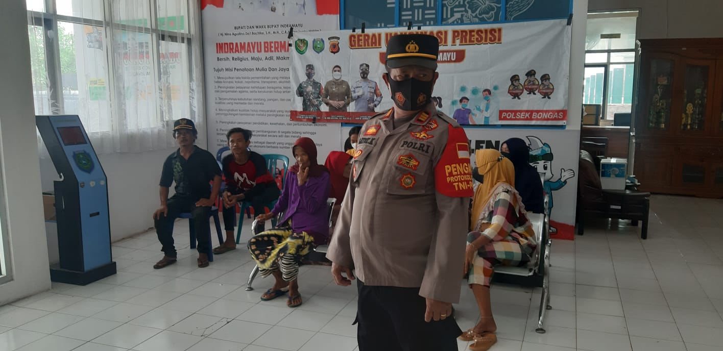 Kami terus mendukung dan mengawal kebijakan PPKM dengan menggencarkan kegiatan vaksinasi Covid-19 bagi masyarakat, tutur Kapolres Indramayu, AKBP M. Lukman Syarif melalui Kapolsek Bongas, AKP Gatot Kuncoro.