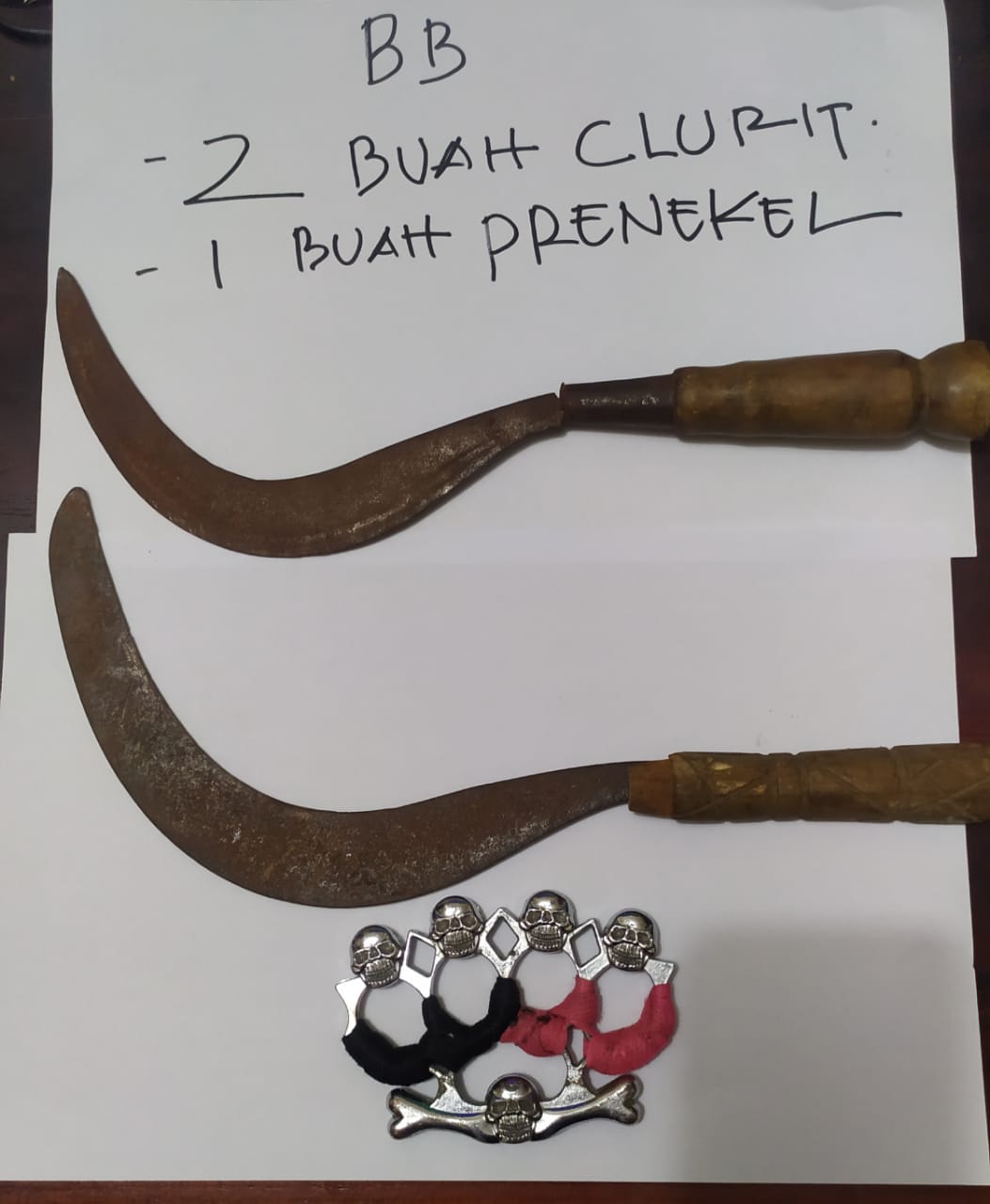 Ditempat terpisah Kapolres Cirebon Kota menyampaika” Dua pelaku percobaan begal tersebut, membawa senjata tajam jenis celurit dan perkenel. Mereka hendak menyasar korban di jalan Raya Kalijaga, Kota Cirebon.