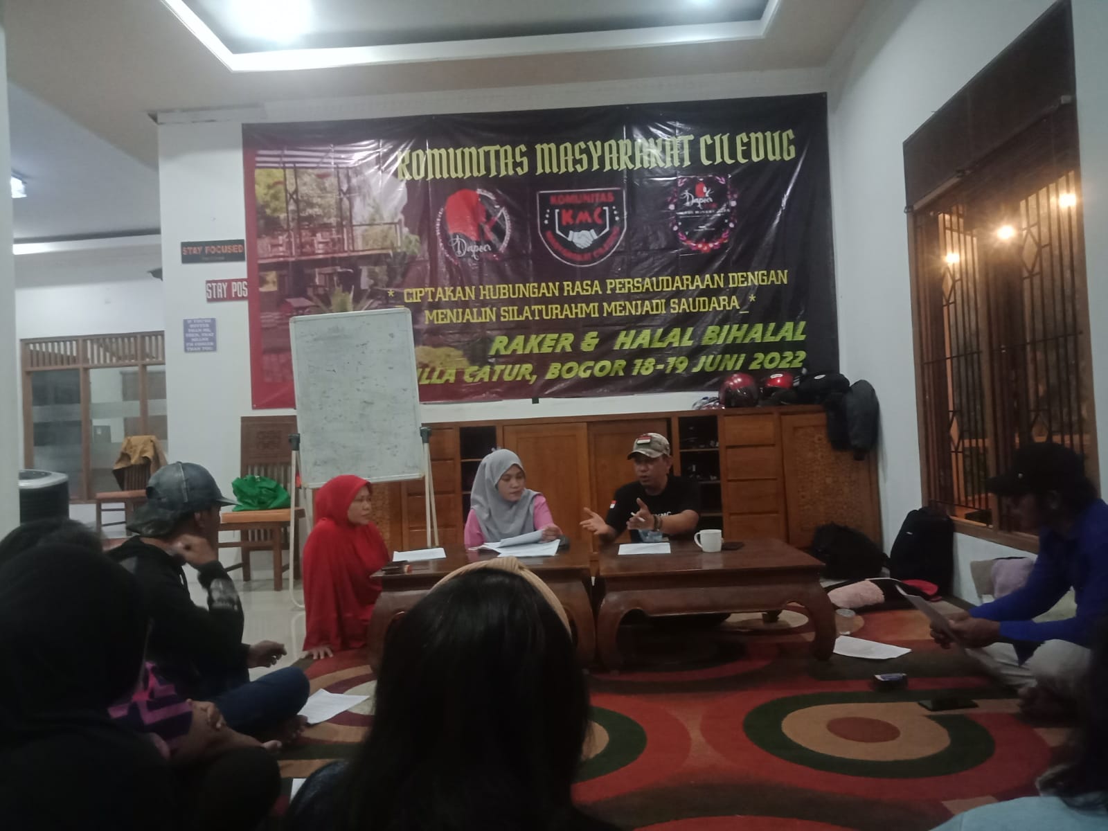 BantenOne.com ,Bogor-Pengurus dan anggota KMC (Komunitas Masyarakat CIledug) adakan Raker (Rapat kerja) yang yang pertama dengan mengambil tema “Ciptakan Hubungan Rasa Persaudaraan Dengan Menjalin Silaturahmi Menjadi Saudara’ di villa Catur Parung Bogor (19 Juni 2022)