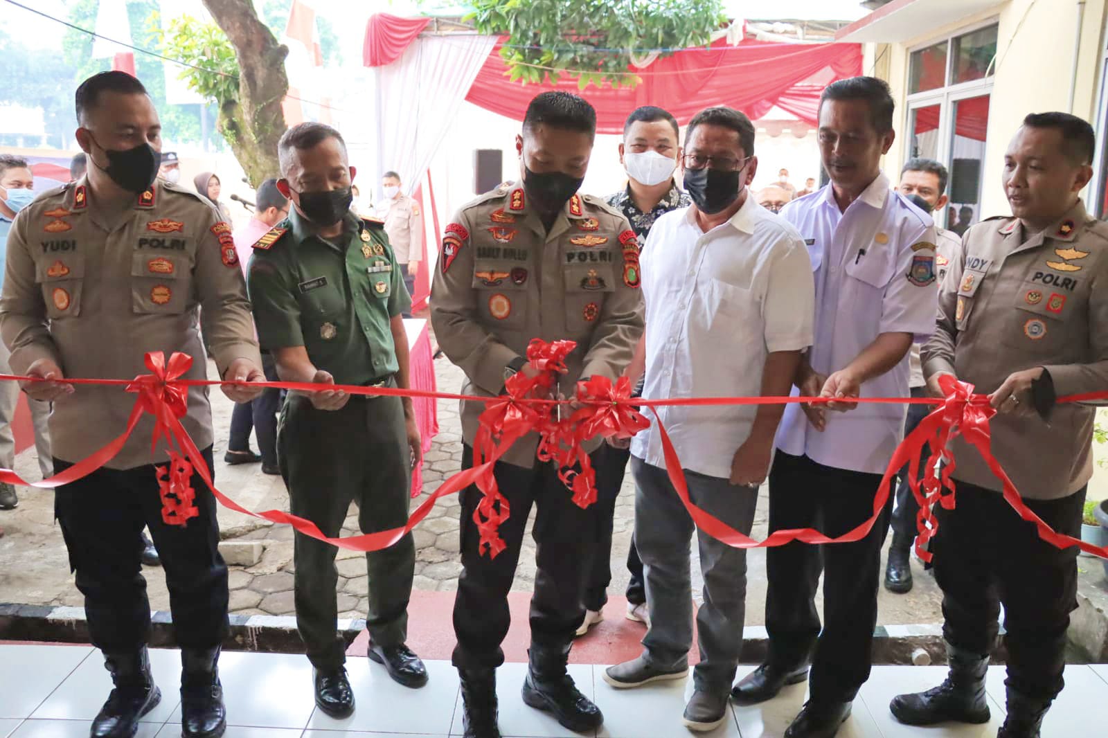 Kapolres Tangerang Selatan Akbp Sarly Sollu, S.I.K, M.H, meresmika ruang pelayanan SKCK Polsek Pamulang dengan pemotongan pita yang didampingi oleh Kapolsek Pamulang beserta jajaran dan Tiga Pilar.