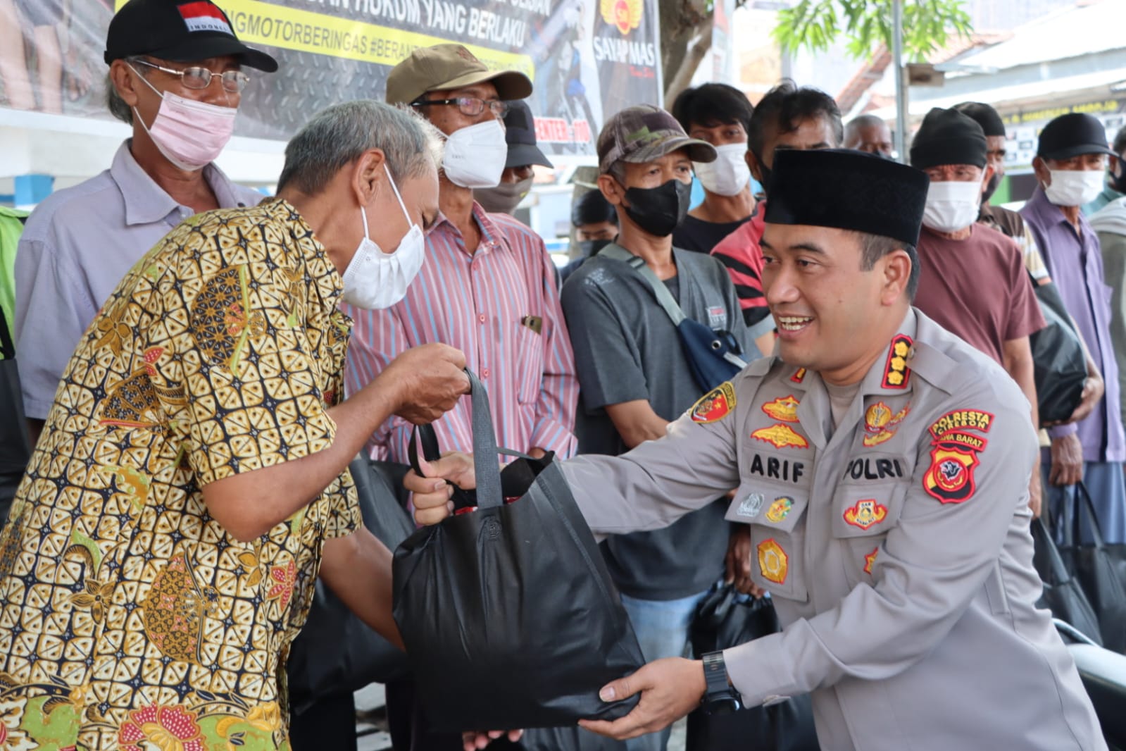 BantenOne.com – Kapolresta Cirebon – Kombes Polisi Arif Budiman, memimpin pembagian ratusan paket Bantuan Sosial (Bansos) kepada warga terdampak kenaikan harga BBM. Saat itu, Kapolresta Cirebon, Kombes Polisi Arif Budiman, membagikan Bansos kepada sopir Angkot dan Ojek pangkalan di Kecamatan Dukupuntang, Kabupaten Cirebon, Sabtu (10/09/2022).