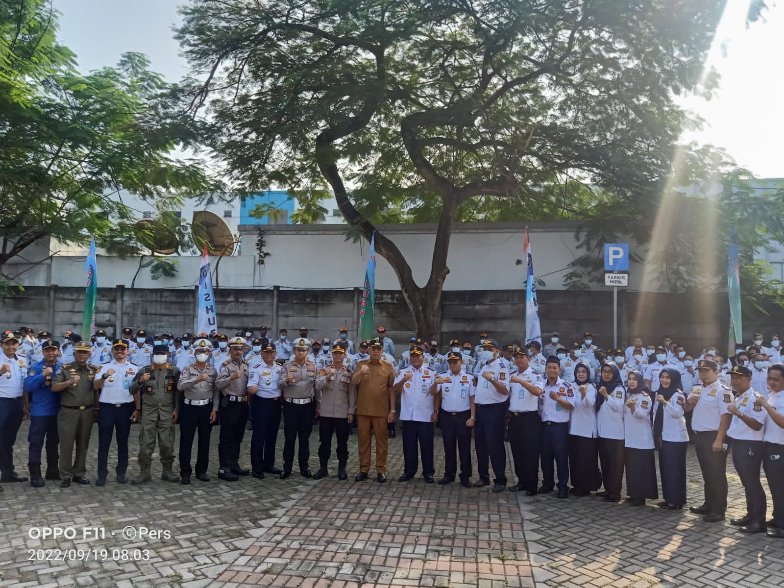 BantenOne.com ,Tangsel-Dalam rangka hari ulang tahun dinas perhubungan Ke 51 tahun 2022 ,Dishub Tangsel gelar apel bersama yang berlangsung di halaman terminal bumi serpong damai ( BSD) senin 19/09/2022.