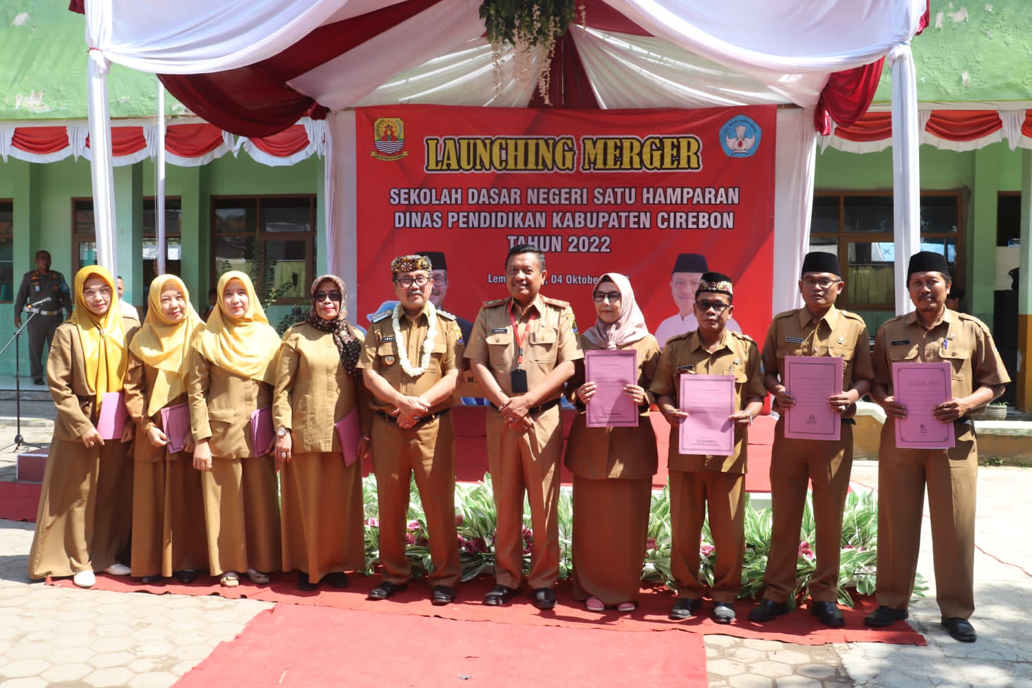 Launching Merger Sekolah Dasar (SD) satu hamparan ini, dilaksanakan di SDN 3 Cipeujeuh Wetan Kecamatan Lemah Abang, Kabupaten Cirebon.