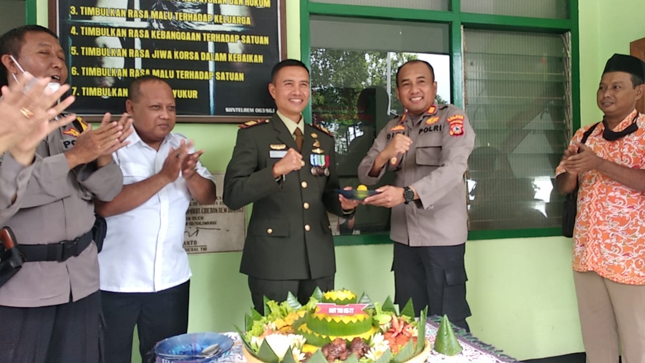 Rombongan dari Polres Cirebon Kota, ini guna memberikan Surprise di Hari Ulang Tahun TNI Ke-77 Tahun.