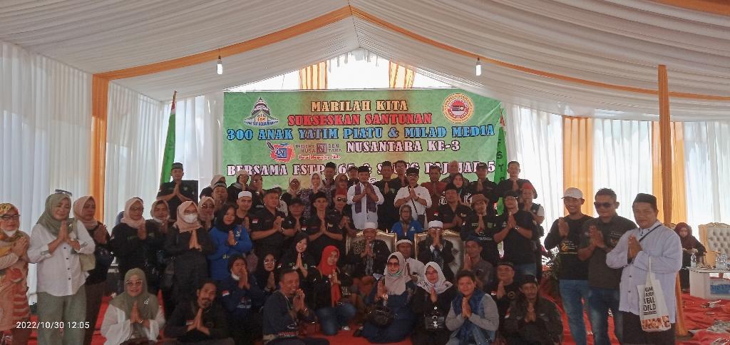 BantenOne.com ,Tangerang-Viral, milad media Independen Nusantara ke 3 (tiga) yang di adakan di depan kecamatan pinang kota Tangerang menjadi sorotan seluruh masyarkat dengan menggelar santunan yatim piatu sebanyak 360 anak, terutama masyarakat pinang, acara tersebut berkat kerjasama antara Forum Silaturahmi Tali Persaudaraan (FSTP) dan juga Saung Pajajar 5 tepatnya dijalan HR Rasuna Said RT 01 RW 01 kunciran jaya kecamatan Pinang, kota Tangerang, (30/10/22).