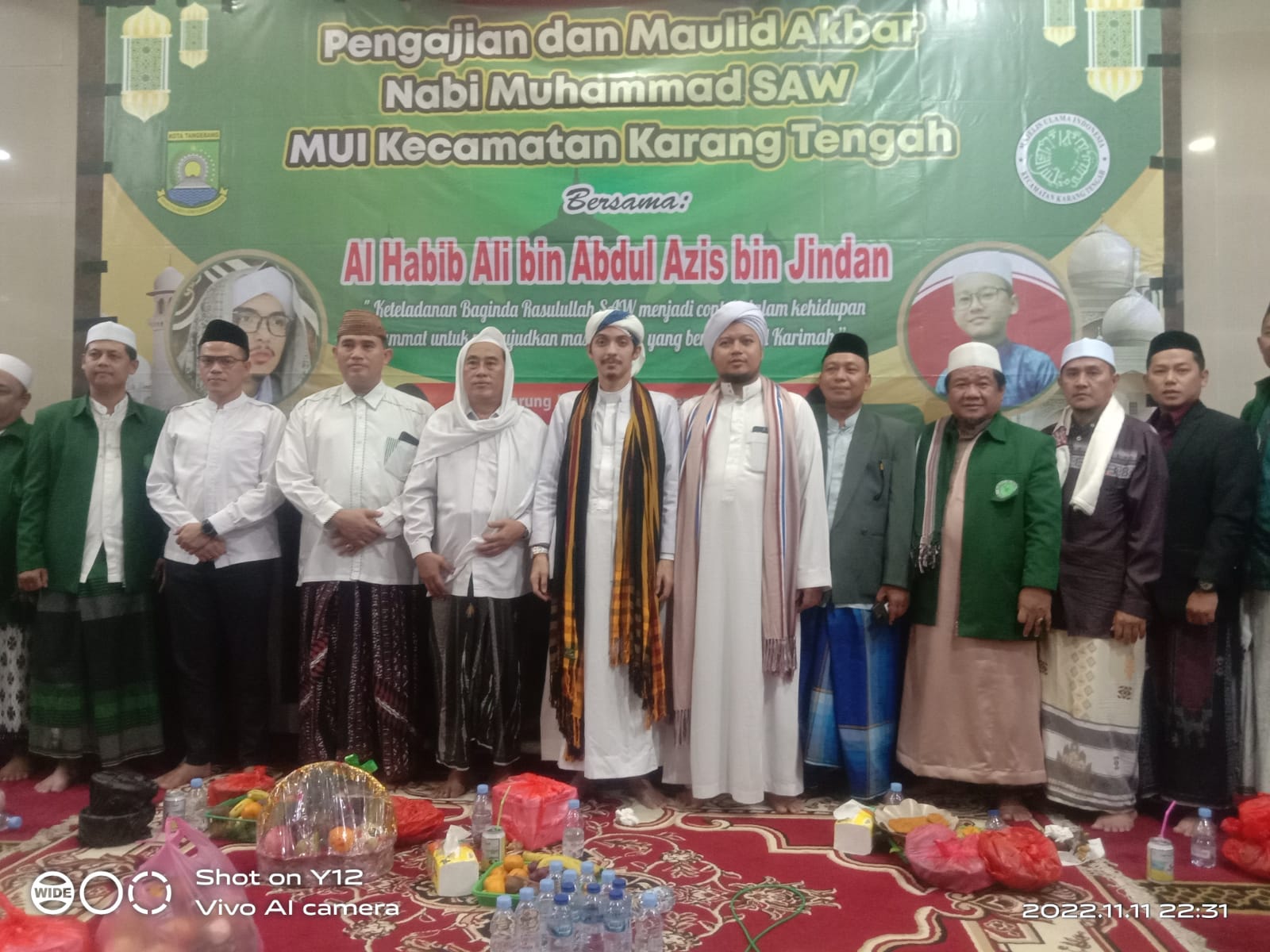 Kegiatan pengajian rutin dua bulanan yang dilaksanakan oleh MUI Kecamatan Karang Tengah dihadiri beberapa pejabat Muspika Kecamatan Karang Tengah antara lain Camat H. Hendriyanto, S.Th.I.M.AP. Mantan Camat H. Malkan Al Masqo, S.IP. M.AP. Sekretaris Camat Hasto Suwaninda, SP. Lurah sekecamatan Karang Tengah, Ketua DKM Masjid Jami Attaibin H. Adul Azis, Pengurus MUI dan DKM, Habib Jafar Sidiq Lc. dan Anggota Dewan DPRD Provinsi Banten Desy Yusandy SE. Babinsa Peltu Agus Fauzi, Babinkamtibmas Aiptu Marsin, Ketua Pemuda Pancasila Kecamatan Karang Tengah Heri Gunawan S.IP. serta pengurus Ranting Pemuda Pancasila Sekecamatan Karang Tengah, penceramah Al Habib Ali bin Abdul Azis bin Jindan.