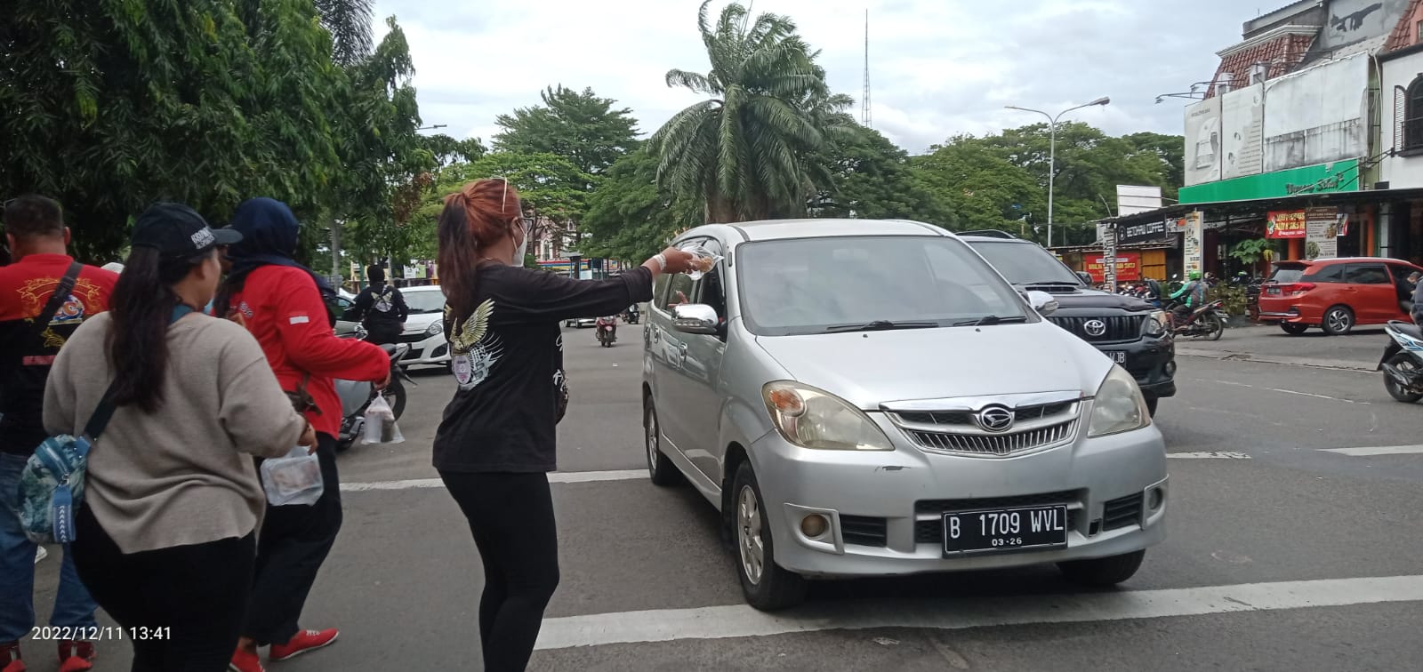 Sebanyak 575 nasi box dan juga Snack box di berikan kepada para pengendara roda 2, roda 4 dan para pedangang yang melintas di jalan raya Hos Cokro Aminto Ciledug yang ramai dan padat memberikan bingkisan secara tertib.