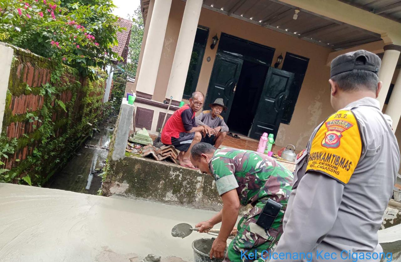 Dalam kesempatan tersebut Polsek Cigasong Polres Majalengka melalui Bhabinkamtibmas, Bripka Dwi Biantoro memberikan Bantuan Sosial berupa semen untuk perbaikan jembatan tersebut.