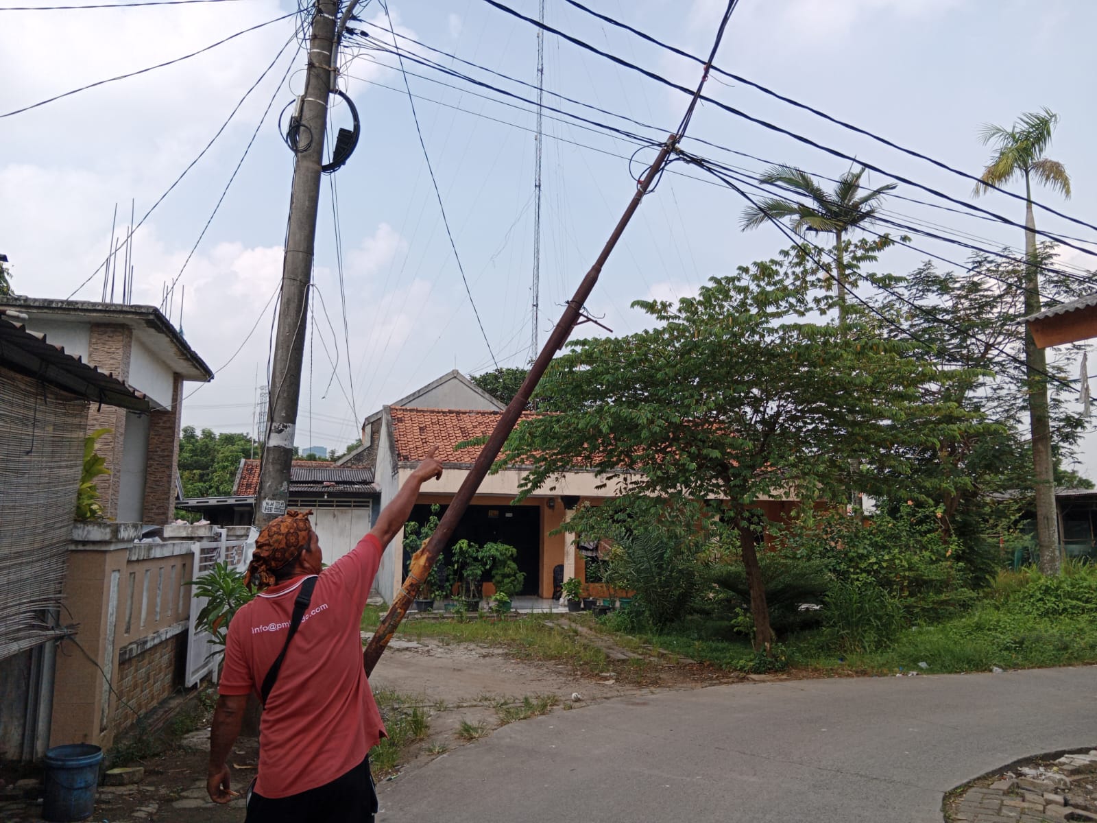 Gilang berharap agar pihak terkait dapat memperbaiki atau mengganti tiang yang hampir roboh.