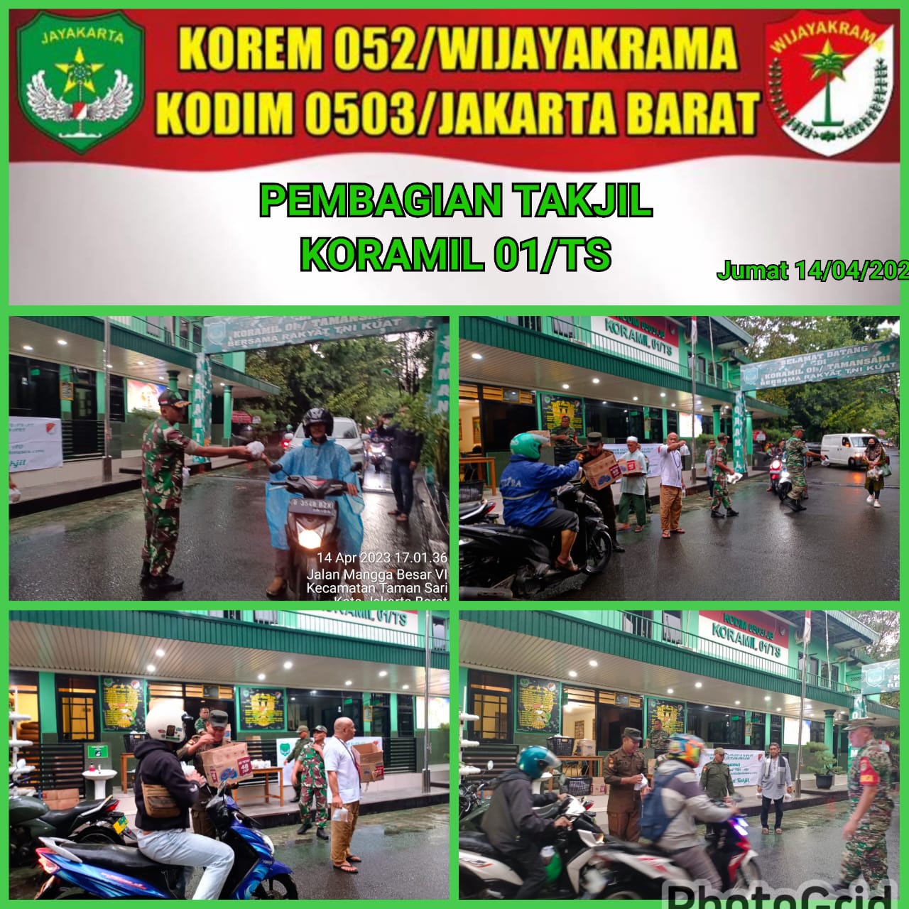 Aksi sosial pembagian Takjil dipimpin langsung oleh Danramil 01/Tamansari yang di hadiri Pemred Media Portalindo.co.id/Portalindonews.com, Amran Muktar selaku media Partner TNI AD dan Babinsa Koramil 01/Tamansari.