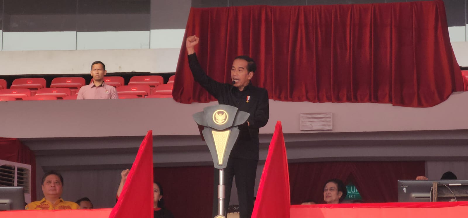 Hal itu Jokowi sampaikan saat berpidato di puncak perayaan Bulan Bung Karno yang digelar pimpinan pusat PDIP di Stadion Utama Gelora Bung Karno, Senayan, Jakarta, Sabtu (24/6) siang.