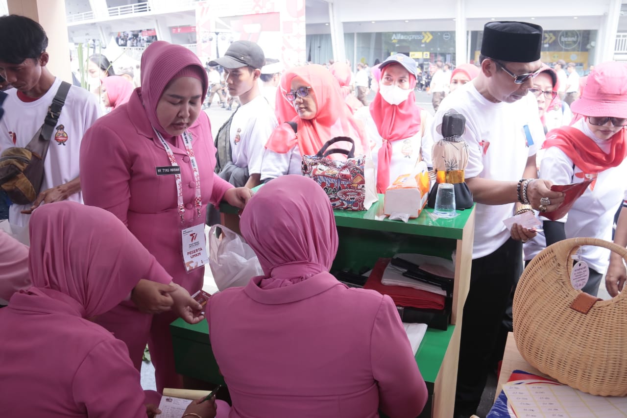 BantenOne.com ,Jakarta-POLDA METRO JAYA- Dalam rangka memeriahkan puncak peringatan Hari Ulang Tahun (HUT) Bhayangkara ke-77 Pengurus Daerah (PD) Bhayangkari Polda Metro Jaya ikut serta dalam festival Usaha Mikro Kecil dan Menengah (UMKM) di Stadion Utama Gelora Bung Karno (SUGBK), Senayan, Jakarta Pusat, Sabtu (1/7) siang.