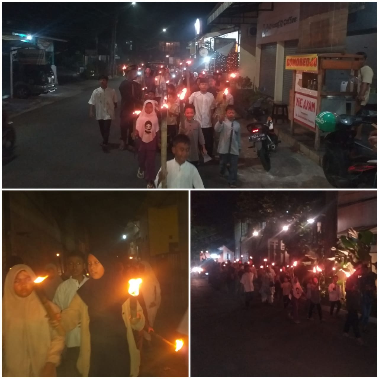 Mereka berkeliling seputaran Komplek dengan berjalan kaki sambil membawa obor,namun ada juga yang menggunakan kendaraan mobil pick up dan kendaraan bermotor,sehingga mencuri perhatian dari para pengguna jalan yang berpapasan.
