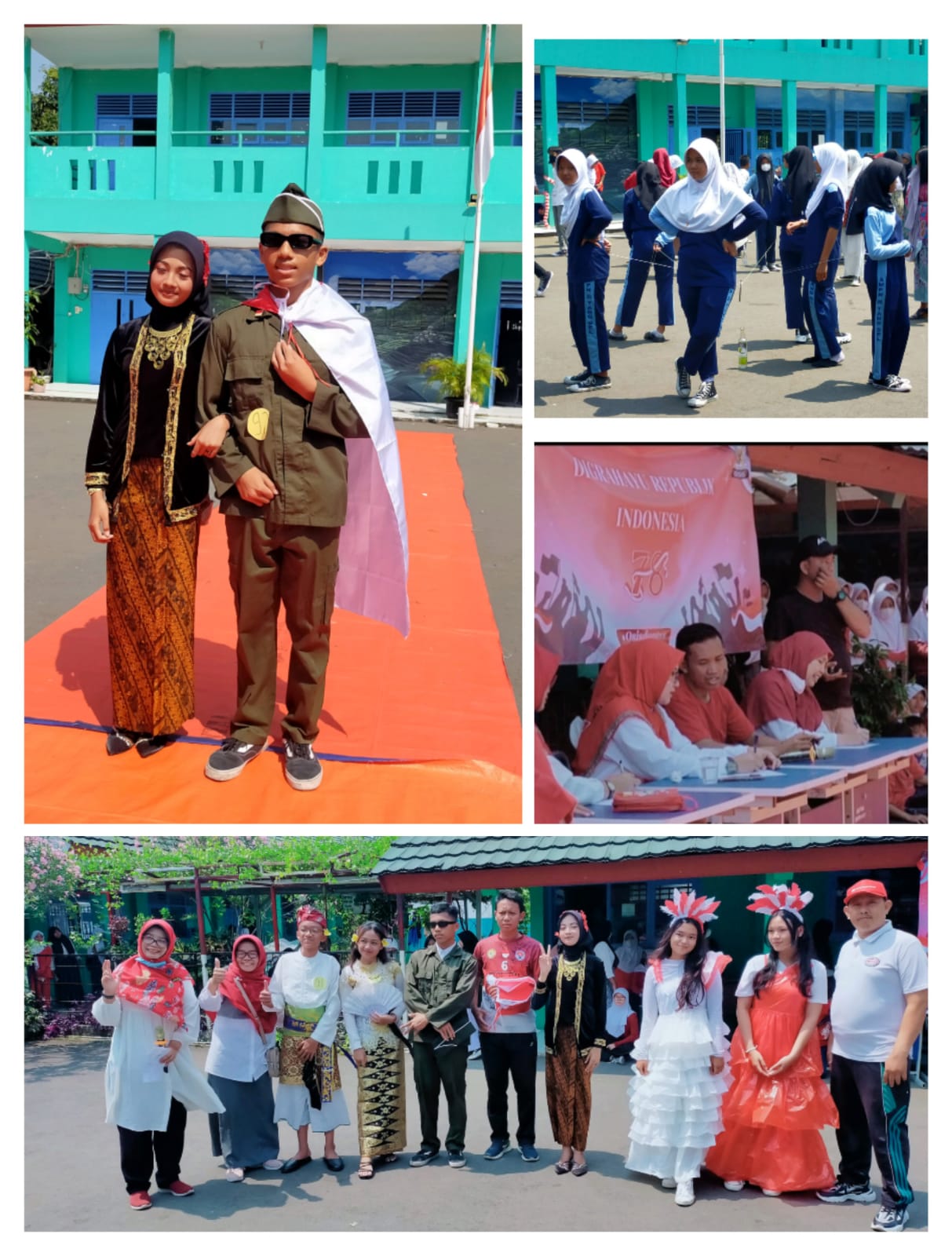 Ika Kusmiati koordinator P5 dan Isah Hernawati Spd.Pembina OSIS juga menambahkan,selain memperingati HUT RI ke-78 siswa juga sekaligus melakukan program P5.Rangkaian acaranya sudah dari kemarin Kamis 15/8/2023.Semua siswa terlibat dari kelas VII sampai kelas IX.Adapun perlombaan yaitu Fashion Show,Estafet Sarung,Estafet Baju, Estafet Kelereng dan memasukkan pensil kedalam botol,”tambahnya.