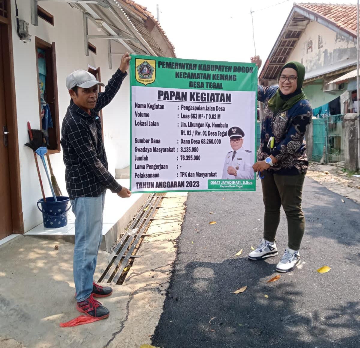 pada pelaksanaanya pembangunan jalan dengan volume luas 663 M² dan Ketebalan (Tinggi) 0,02 Meter hampir menelan anggaran lebih dari 80 jutaan, ya saya selaku kades menambah dari kantong sendiri, hal ini demi warga dan demi implementasi dari pembangunan desa,” terang Kang Omat, Kamis (5/10/2023).