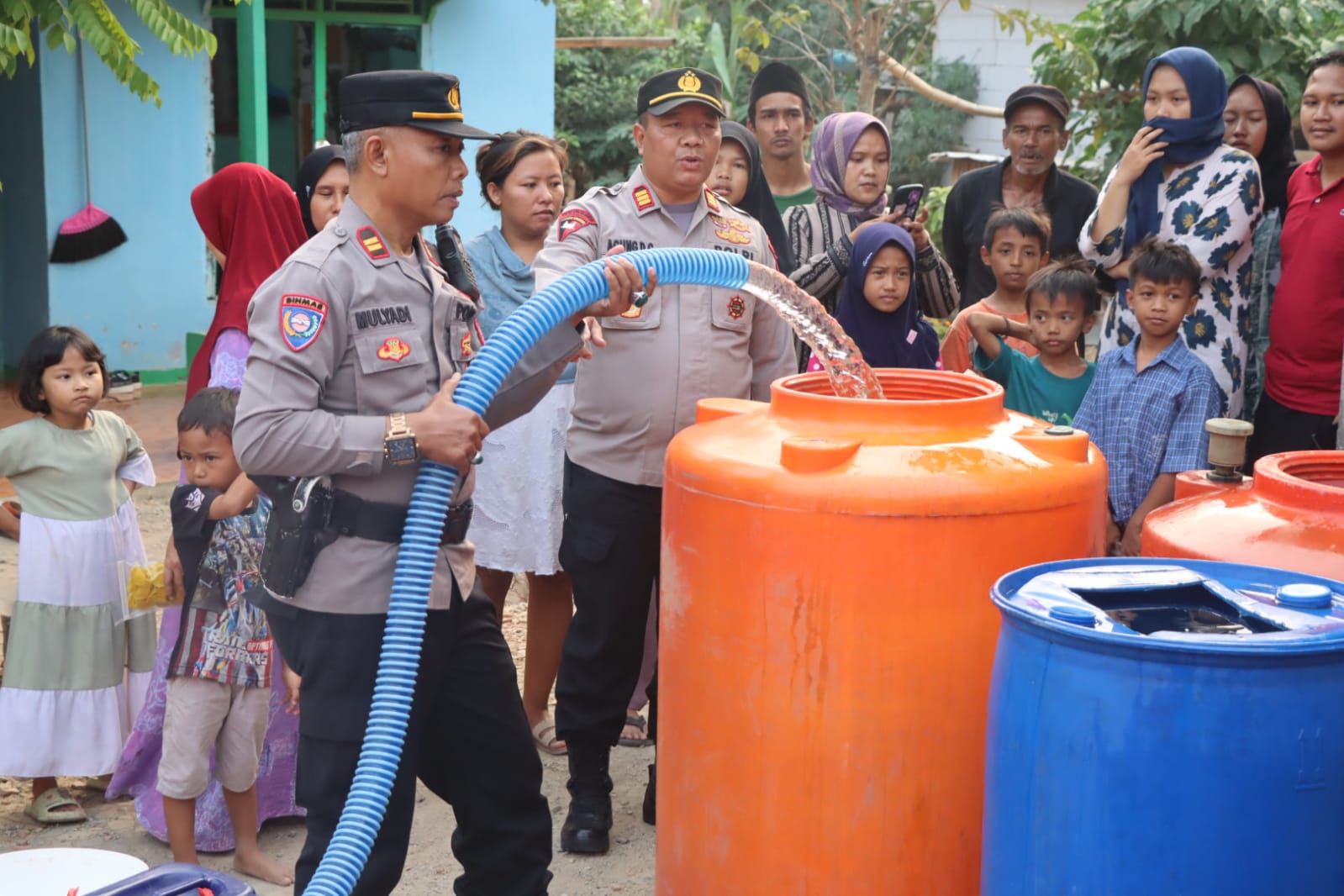 BantenOne.com, Legog--Polsek Legok Polres Tangerang Selatan (Tangsel) kembali melaksanakan bantuan sosial (Bansos) berupa bantuan air bersih kepada warga Legok yang mengalami dampak kekeringan akibat kemarau berkepanjangan.