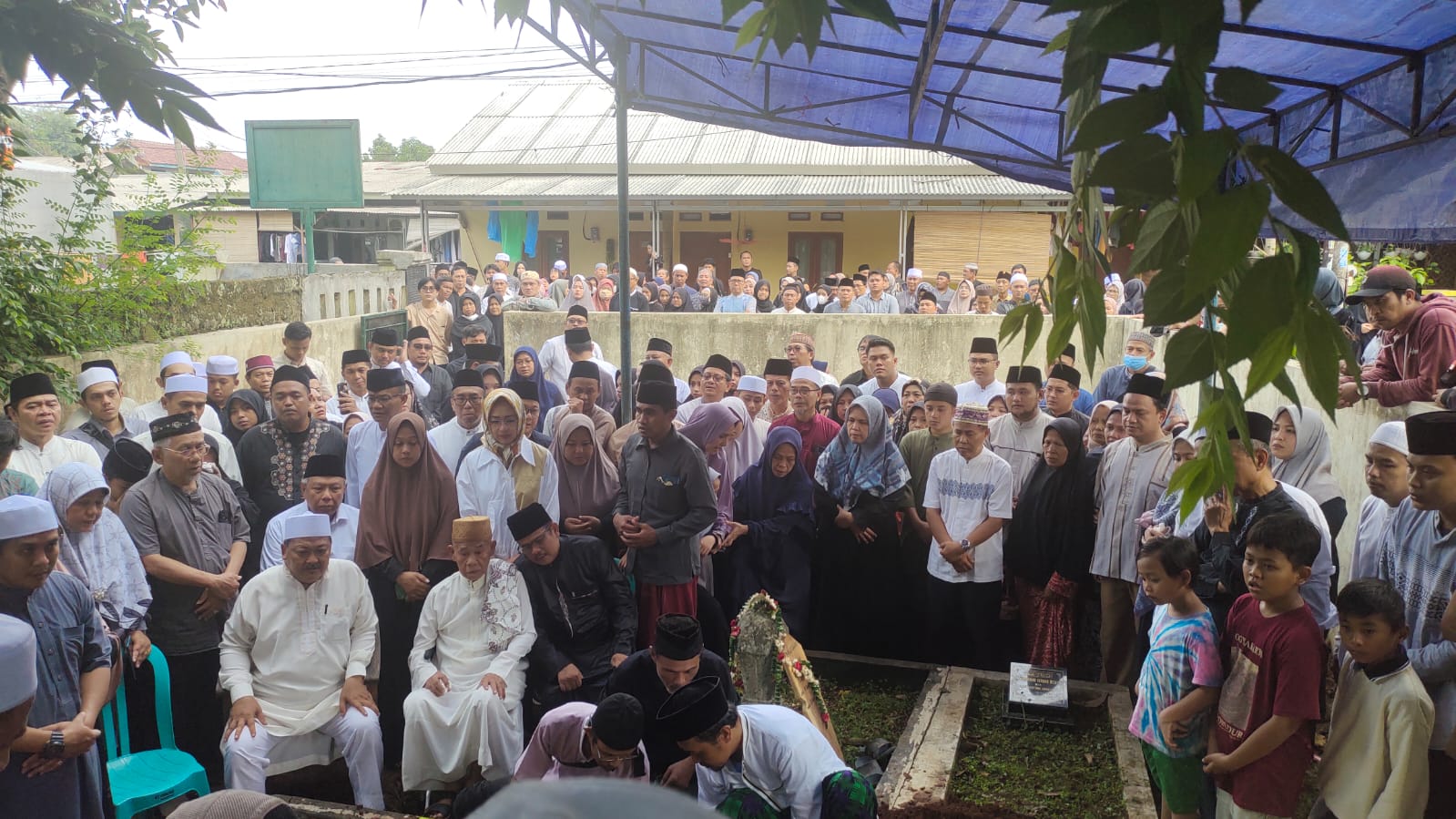 Ribuan warga mengiringi prosesi pemakaman seusai disalatkan di masjid komplek Yayasan Darul Hikmah, Jalan Surya Kencana, Pamulang Barat. Nampak hadir mengiringi pemakaman Walikota Tangsel Benyamin Davnie, Calon Gubernur Banten Airin Rachmi Diany, Ketua DPRD Kota Tangsel Abdul Rasyid tokoh masyarakat serta alim ulama dan para lurah wilayah Pamulang serta jajaran Polres Kota Tangsel, Camat Ciputat Timur Hamdani HS, Camat Pamulang Mukroni.