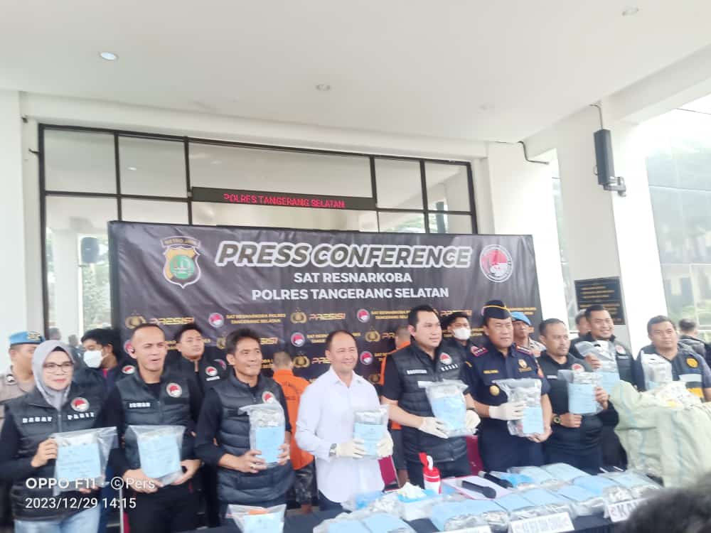 BantenOne.com, Tangsel – Menjelang pergantian tahun, wilayah hukum Polres Tangerang Selatan (Tangsel) bersama Satuan Reserse Narkoba Polres Tangsel, berhasil menggagalkan peredaran Narkotika jenis Ganja seberat 27,3 Kg. Kamis, (30/12/23).