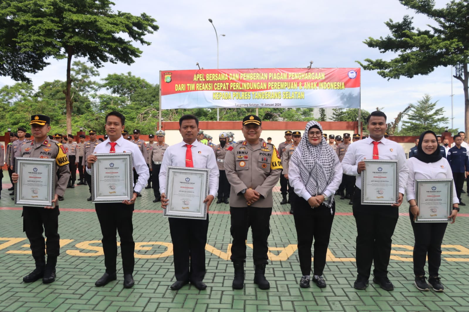 Penghargaan yang diberikan langsung oleh Koordinator Nasional TRC Perlindungan Perempuan dan Anak Jeny Claudya Lumowa tersebut terlihat dalam apel pagi yang dipimpin langsung oleh Kapolres Tangsel AKBP Ibnu Bagus Santoso, S.I.K., M.M., M.H. di lapangan apel Polres Tangsel pada kamis (18/1) pagi.