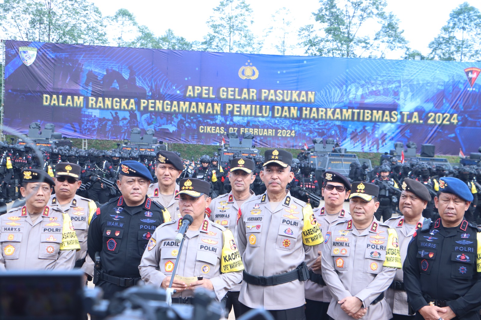 BantenOne.com, Jakarta – Wakapolda Metro Jaya Brigjen Pol. Suyudi Ario Seto menghadiri Apel Gelar Pasukan dalam rangka Pengamanan Pemilu dan pemeliharaan keamanan dan ketertiban masyarakat (Harkamtibmas) Tahun 2024 di Lapangan Singa Lodaya Cikeas Jawa Barat, Rabu (07/02/2024).