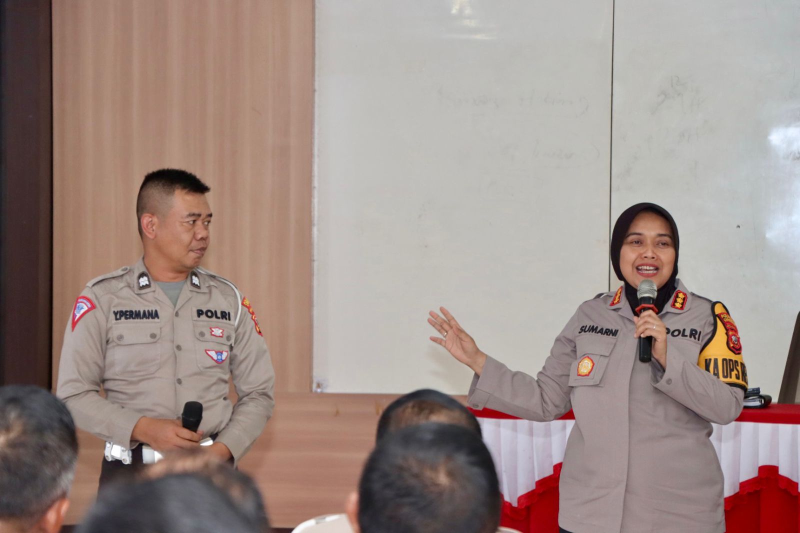 “Hadirkan Anggota di setiap Pos Lalu Lintas, perempatan, pertigaan, persimpangan jalan, titik yang macet terutama di jalur Pantura secara rutin untuk melaksanakan pengaturan secara bergantian. Laksanakan tugas sesuai komitmen dan penuh tanggung jawab sebagai Anggota Lalu Lintas,” kata Kombes Polisi Sumarni.