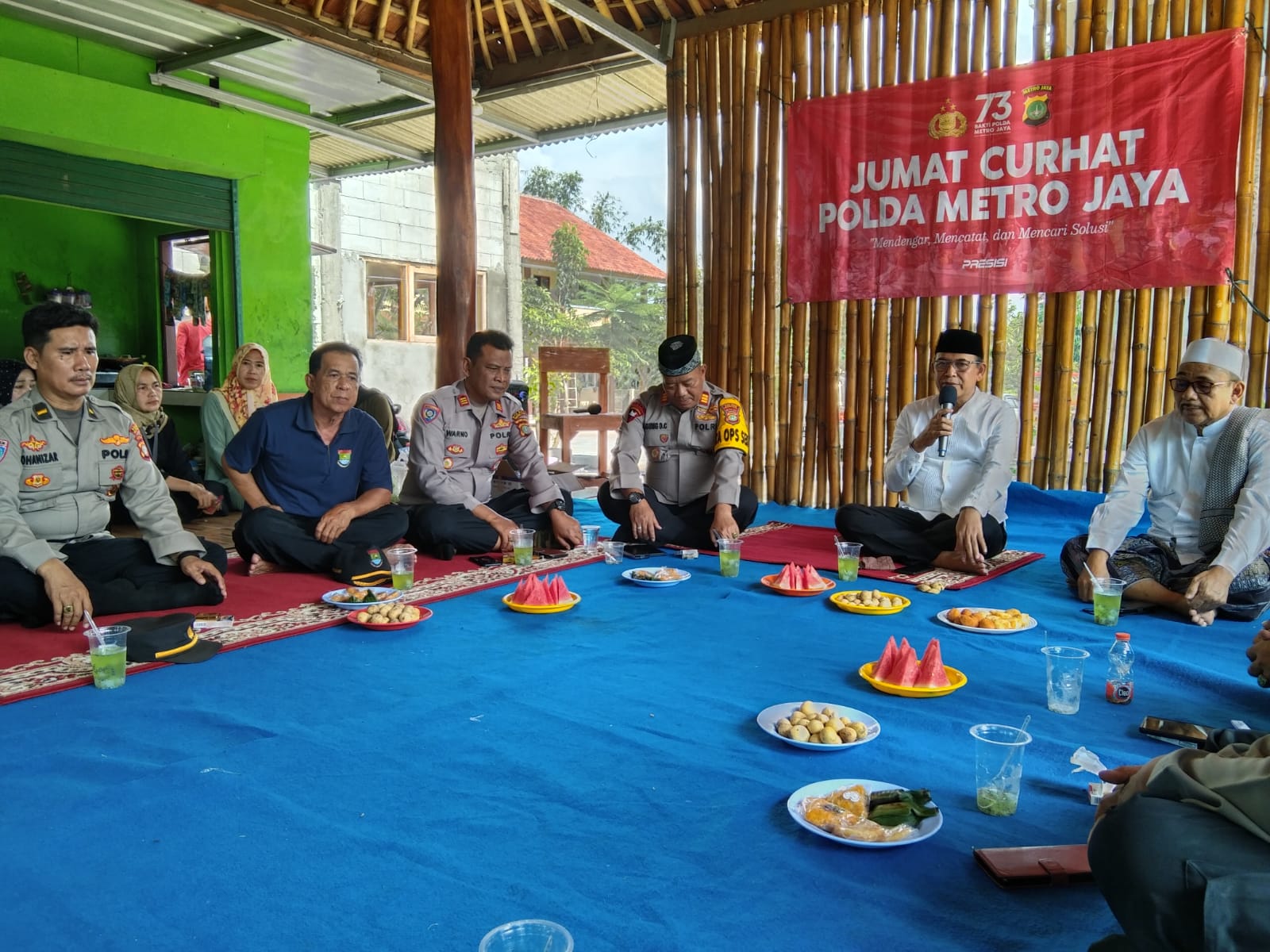 BantenOne.com, Tangsel–Kapolsek Legok Polres Tangerang Selatan, AKP Agung Dwi Cahyono, bersama Wakapolsek dan Kasat Binmas Polres Tangerang Selatan, melaksanakan kegiatan Jumat Curhat di Kampung Cakung, Rt. 001 Rw. 004, Desa Babat, Kecamatan Legok, Kabupaten Tangerang pada Jumat, 1 Maret 2024. Kegiatan ini bertujuan untuk mendekatkan diri dengan masyarakat, mendengar keluhan, mencatat permasalahan, dan mencari solusi bersama.