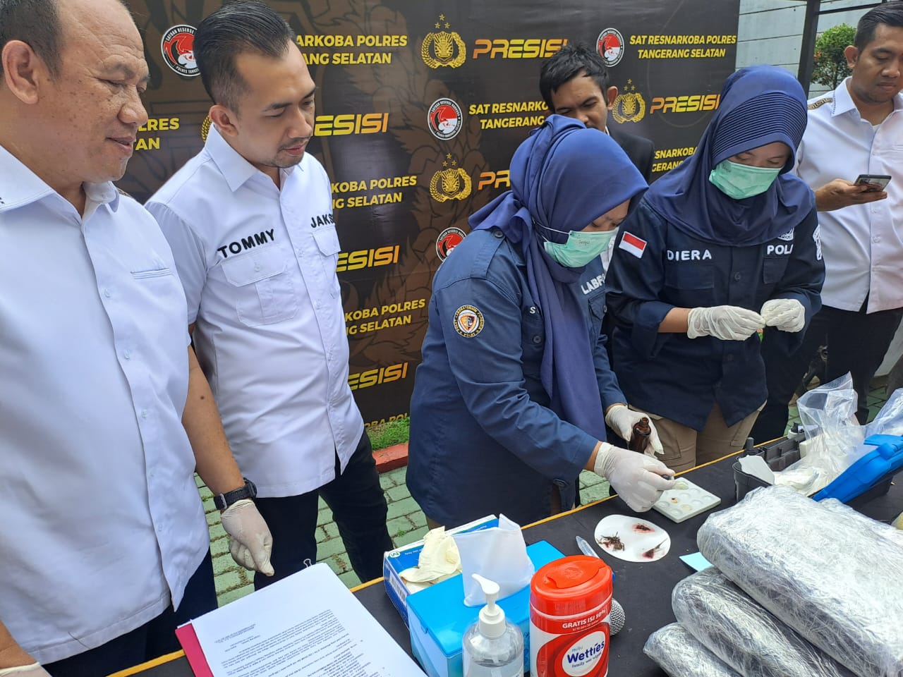 BantenOne.com, Tangsel–Satuan reserse narkoba (Sat Resnarkoba) Polres Tangerang Selatan (Tangsel) memusnahkan barang bukti narkotika jenis ganja seberat 20,2 Kg dan sabu seberat 0,81 gram.