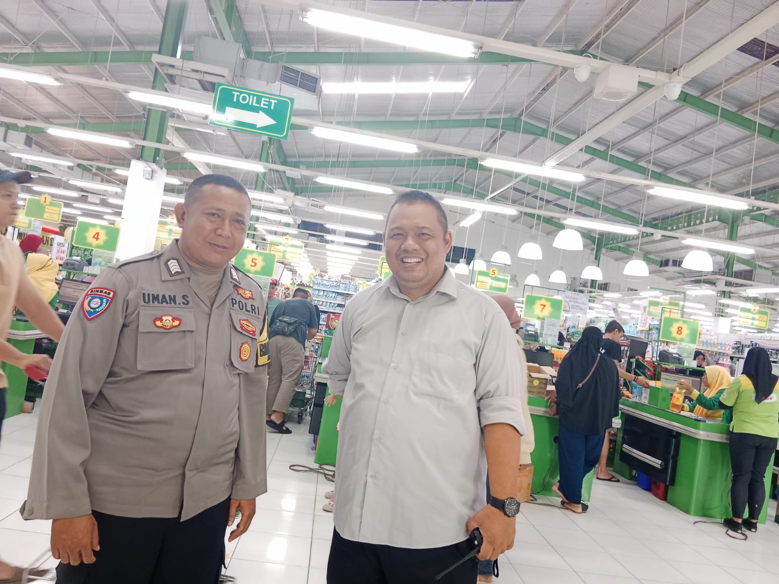 BantenOne.com, Tangerang Selatan — Selasa, 12 Maret 2024, Bhabinkamtibmas Kelurahan Cipayung dari Polsek Ciputat Timur, Bripka Uman Siswanto, melaksanakan kunjungan ke Swalayan Tip Top Ciputat.