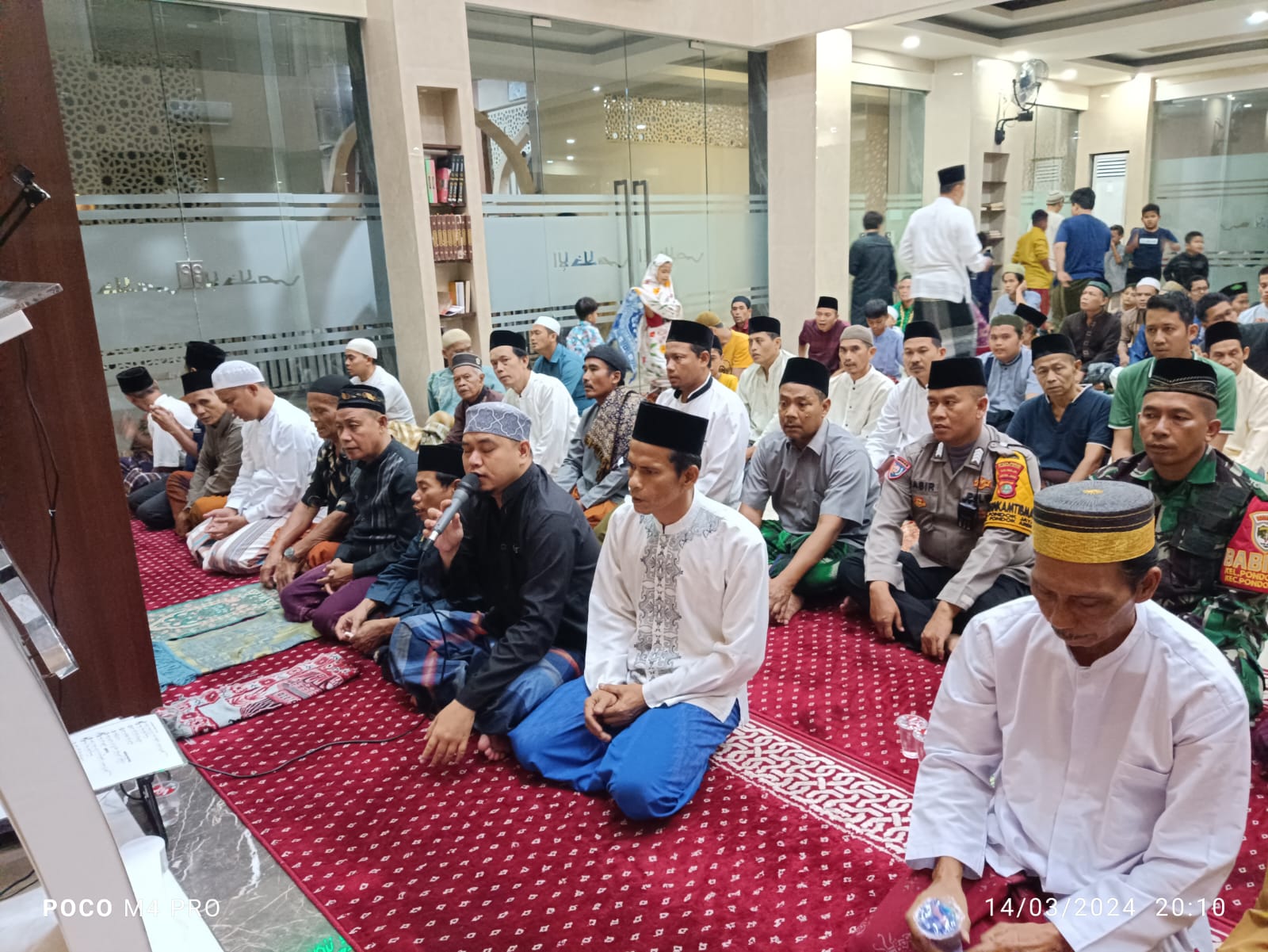 Pukul 19.30 WIB, jamaah mulai berkumpul di masjid untuk melaksanakan sholat tarawih keliling. Sebelumnya, Ustad Sarman Usyudi dari Polsek Pondok Aren menyampaikan kultum yang memotivasi para jamaah. Dalam kultumnya, beliau menekankan pentingnya bersyukur atas kesempatan bertemu dengan bulan suci Ramadhan dalam keadaan sehat, serta menegaskan agar bulan suci ini tidak dimanfaatkan sebagai ajang konflik.