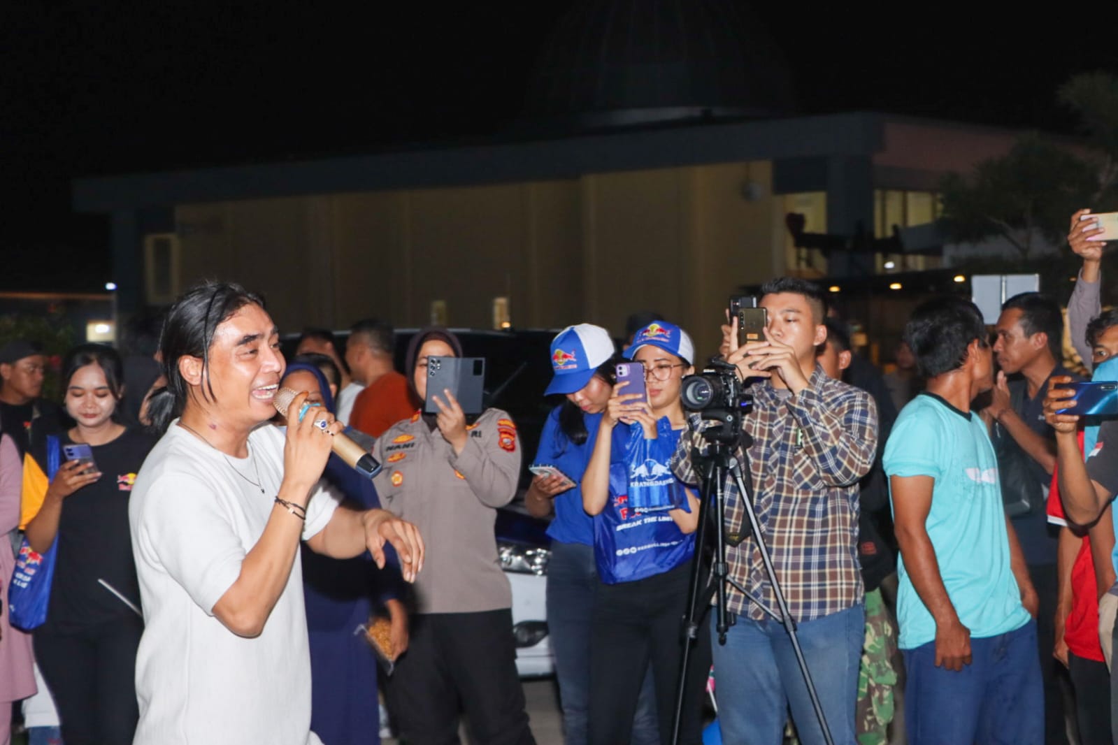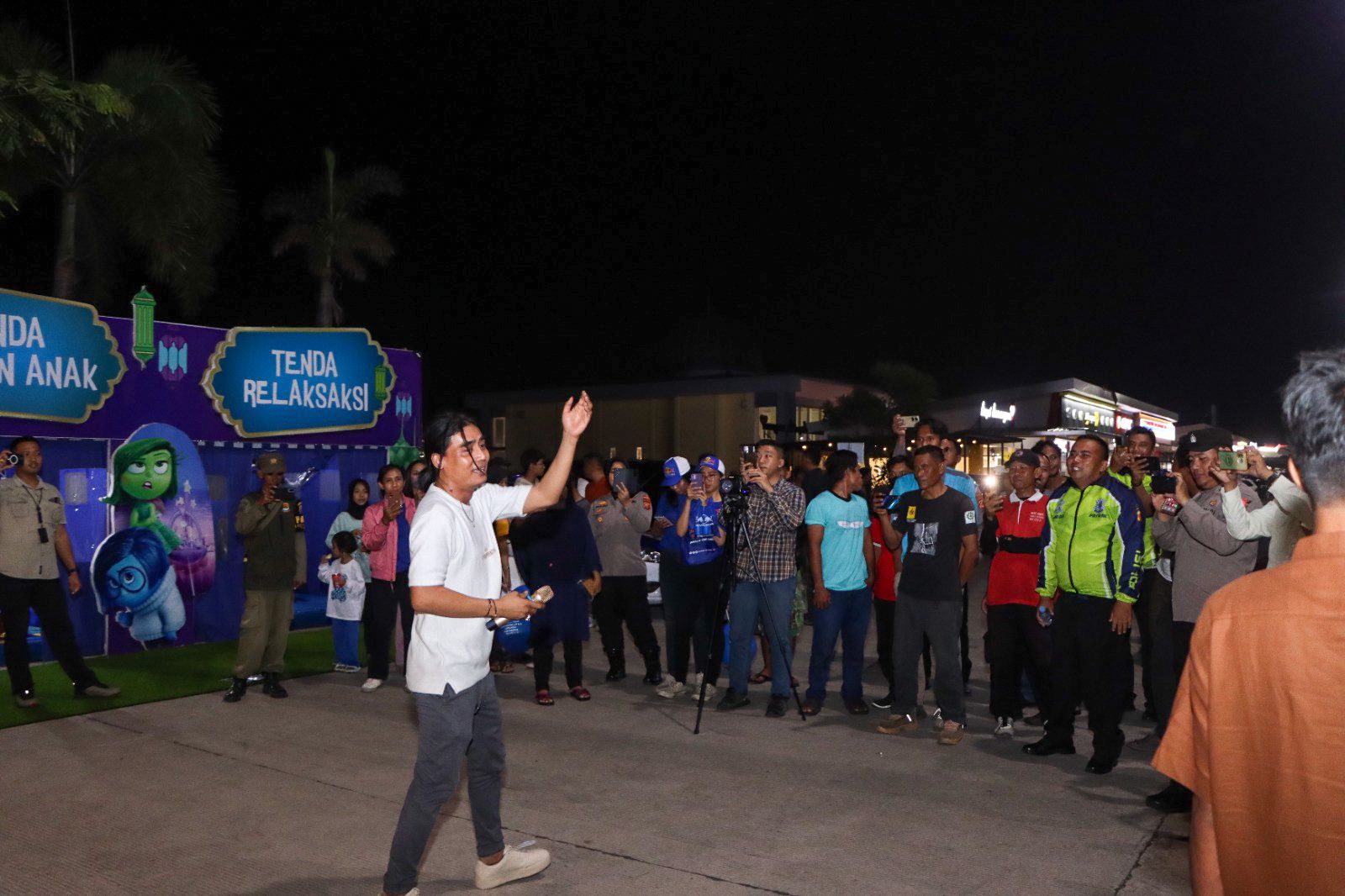 BantenOne.com – Polresta Cirebon – Charly Van Houtten hadir di Rest Area KM 228 Tol Kanci dan Pejagan Kecamatan Pabuaran, Kabupaten Cirebon, untuk menghibur Pemudik. Penampilan tersebut merupakan spontanitas dari Charly Van Houtten untuk menyajikan hiburan bagi Pemudik yang tengah beristirahat, Minggu (7/4/2024) malam.