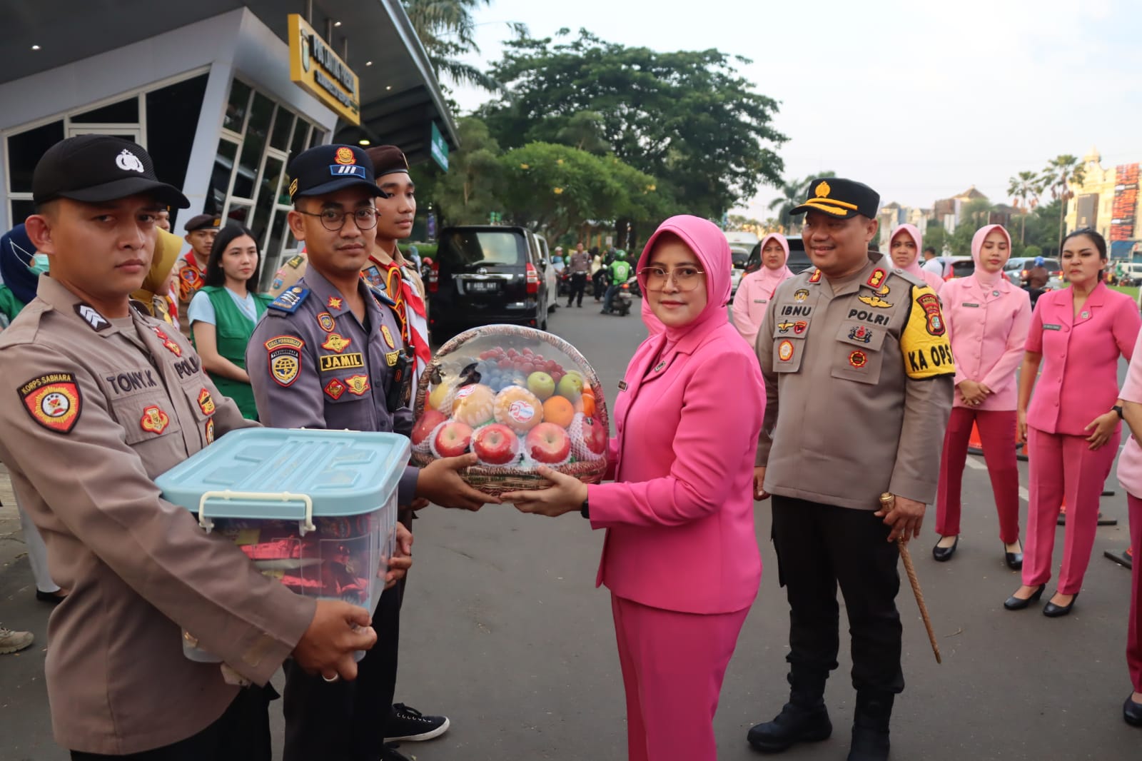 BantenOne.com, Tangerang Selatan – Bertajuk Bhayangkari Peduli, Ketua Bhayangkari Tangerang Selatan Ny. Ira Ibnu Bagus didampingi Kapolres Tangerang Selatan AKBP Ibnu Bagus Santoso, S.I.K., M.M., M.H beserta Pengurus Bhayangkari Tangerang Selatan menyerahkan bingkisan kepada petugas pos Pam Operasi Ketupat Metro Jaya 2024.