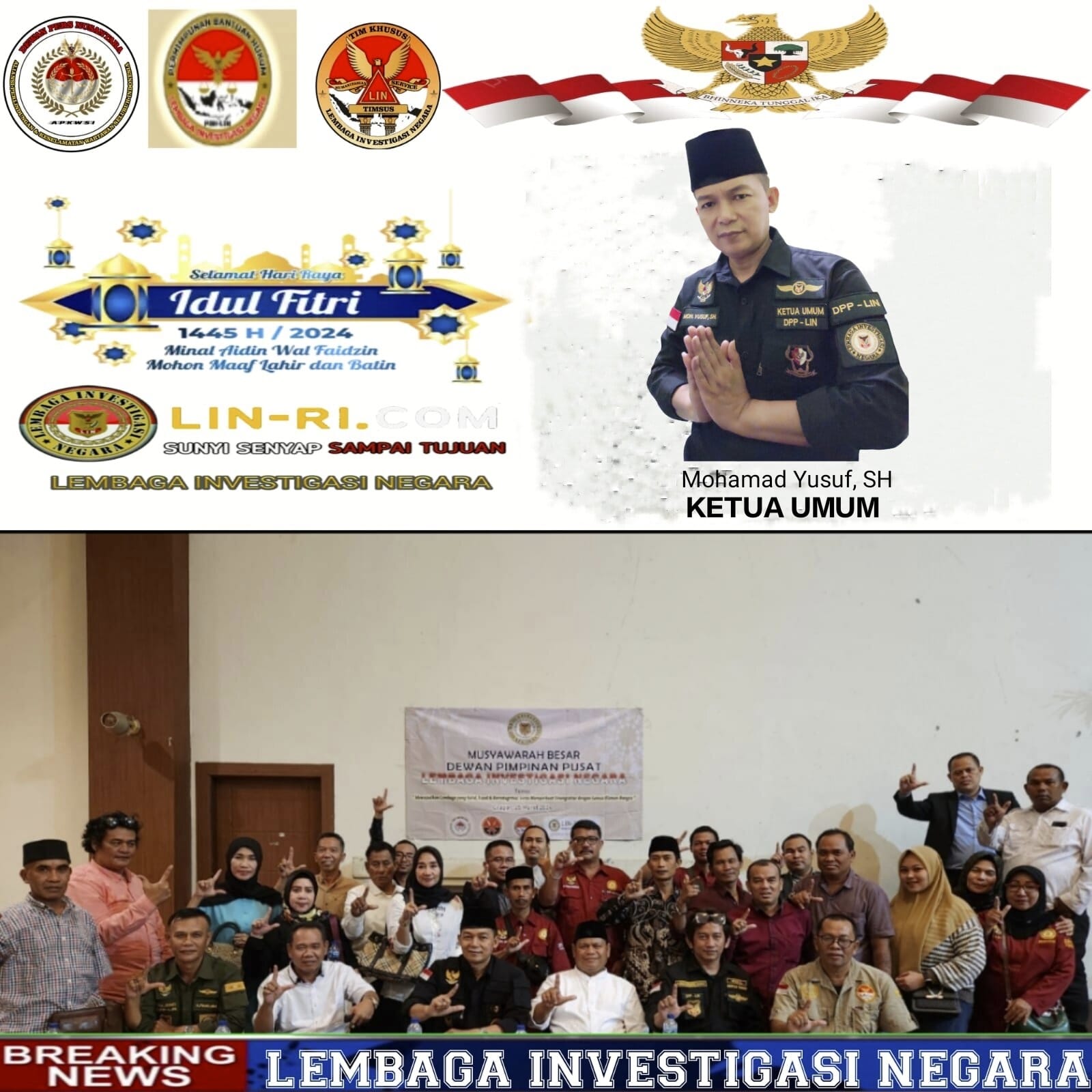 BantenOne.com, Tangerang,-Mohamad Yusuf, SH Ketua Umum DPP Lembaga Investigasi Negara ( LIN ) pada kesempatan yang berbahagia ini di kediamannya memberikan ucapan *SELAMAT HARI RAYA IDUL FITRI 1 SYAWAL 1445 H* (10/04/2024 ).