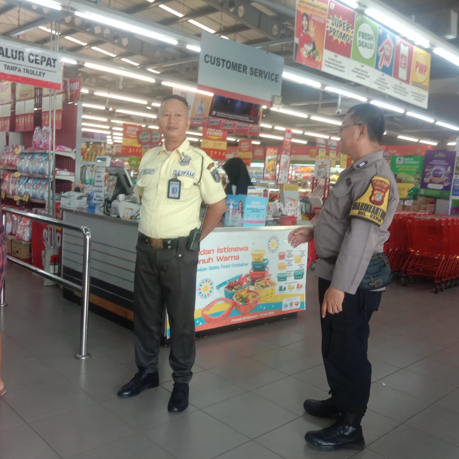 Dalam kunjungannya kali ini, Aiptu Asep tidak hanya melakukan patroli rutin, tetapi juga menjalin kerjasama yang erat dengan petugas keamanan (Satpam) supermarket tersebut. Ia berkoordinasi dengan Bp. Wahyudin, petugas keamanan Superindo, untuk membahas berbagai hal terkait keamanan dan ketertiban masyarakat (kamtibmas).