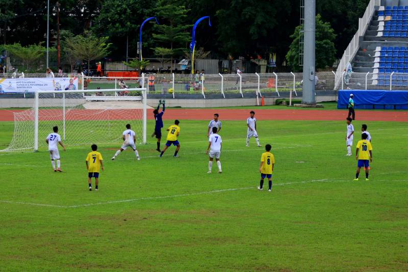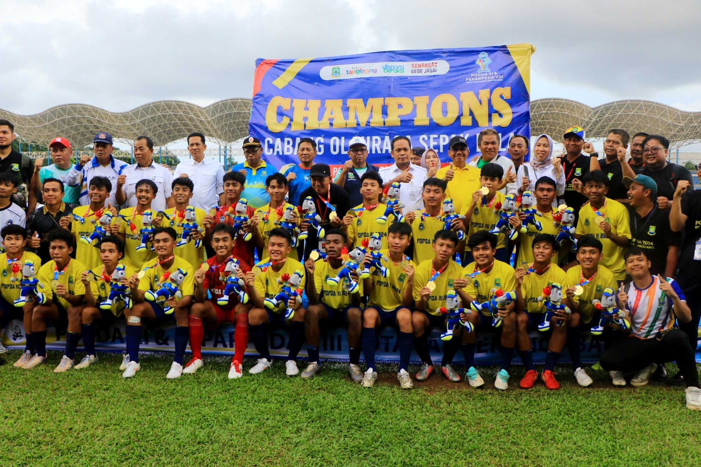 BantenOne | Kota Tangerang,- Medali emas berhasil diraih tim sepak bola Kota Tangerang dalam ajang Pekan Olahraga Pelajar Daerah (POPDA) XI 2024 setelah mengalahkan Kabupaten Tangerang dengan skor telak 3-0. Pertandingan final berlangsung di Stadion Benteng Reborn, Kota Tangerang, pada hari Rabu (12/6).