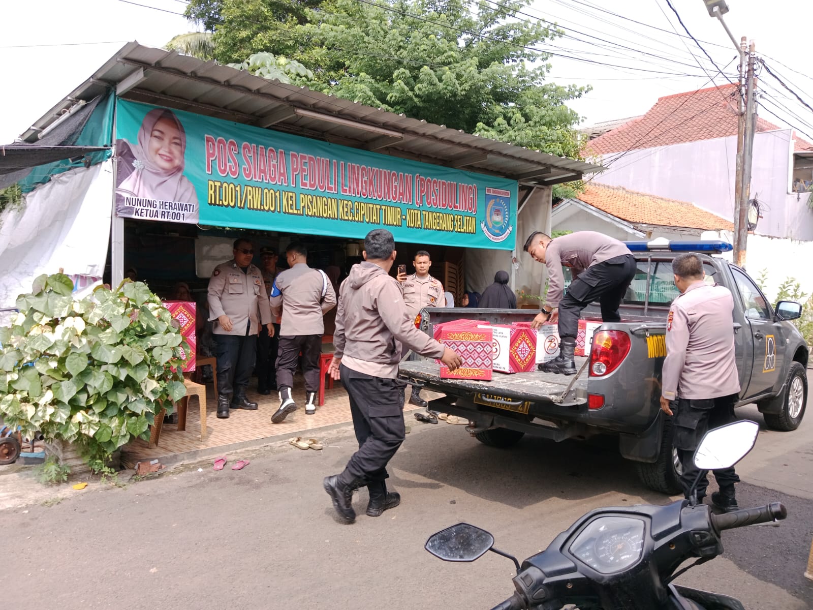 BantenOne.com, Tangerang Selatan –– Pada hari Rabu, 19 Juni 2024, di RT 01/01 Kelurahan Pisangan, Kecamatan Ciputat Timur, telah dilaksanakan kegiatan pembagian sembako kepada masyarakat dalam rangka memperingati HUT Bhayangkara ke-78. Acara ini dimulai pada pukul 10.00 WIB dan berlangsung hingga selesai. Sebanyak 22 paket sembako disalurkan kepada Masyarakat.
