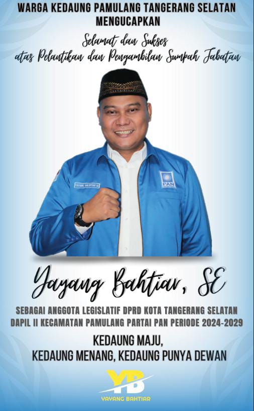 Dari 50 anggota DPRD Kota Tangsel yang di lantik salah satunya Yayang Bahtiar S.E, yang merupakan dapil Pamulang dari Partai Amanat Nasional ( PAN)