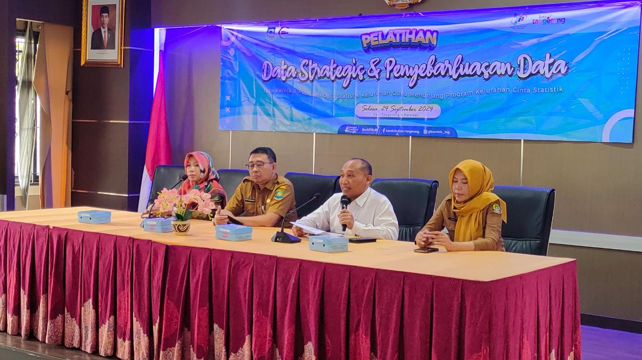 Banten One | Kota Tangerang,- Dinas Komunikasi dan Informatika (Diskominfo) Kota Tangerang menggelar Pelatihan Peningkatan Kapasitas SDM Kelurahan terkait Data Strategis dan Penyebarluasan Data yang diikuti pegawai Kecamatan Karawaci dan Kecamatan Tangerang, di Aula Kecamatan Tangerang, Selasa (24/9/24).