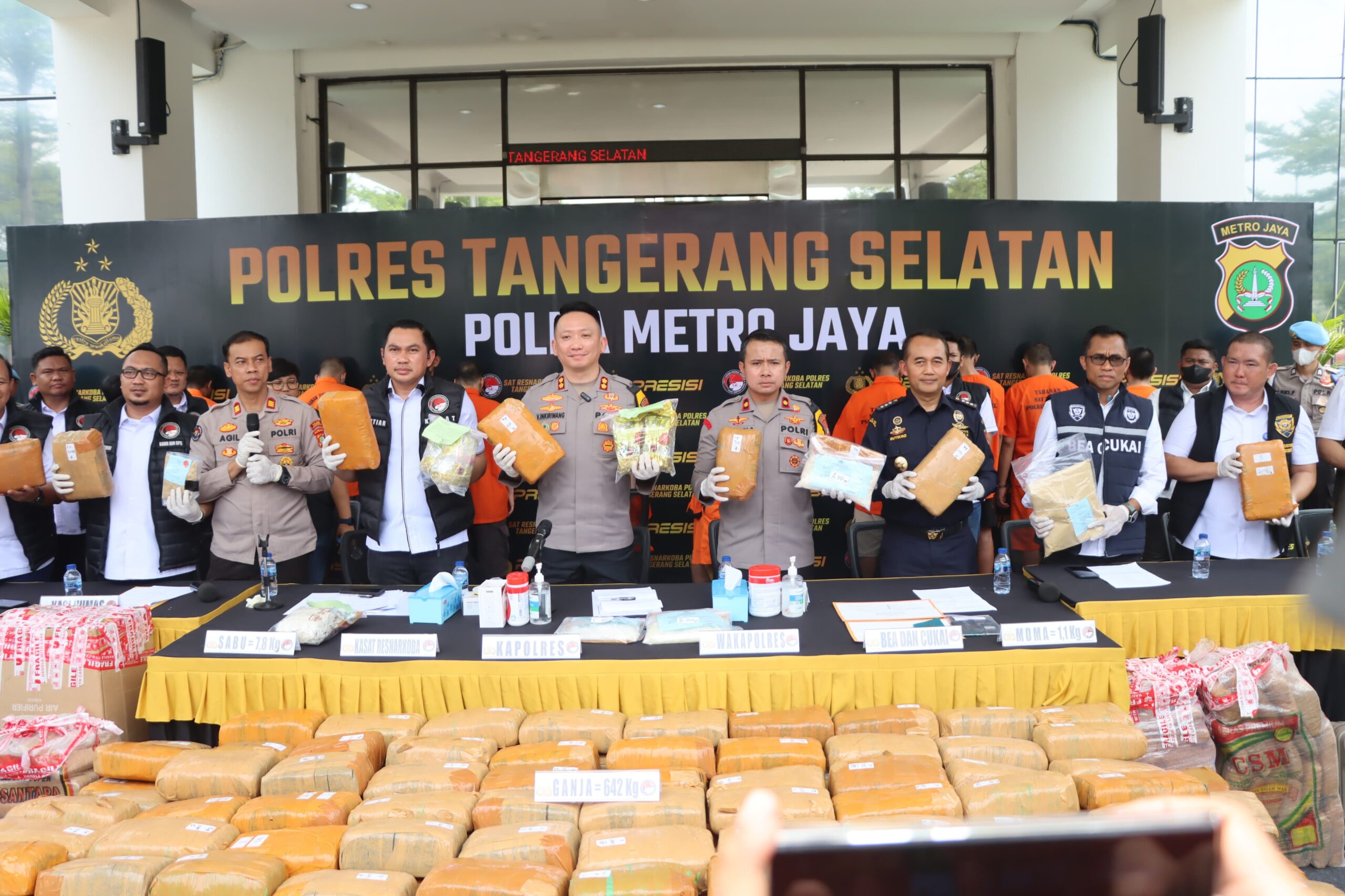 Selamatkan 2 juta Jiwa Lebih Satresnarkoba Polres Tangsel Sita 642 Kg Ganja, 7,8 Kg Sabu dan 1,1 Kg MDMA