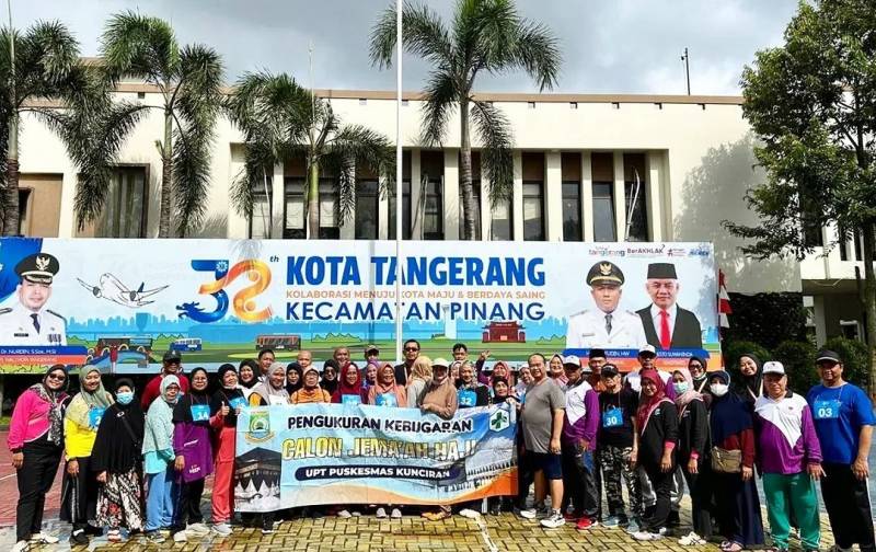 BANTENONE.COM| Kota Tangerang. – Dinas Kesehatan (Dinkes) Kota Tangerang tengah menyiapkan keberangkatan para calon jemaah haji keberangkatan tahun 2025. Salah satunya melakukan pemeriksaan pengukuran kebugaran calon jemaah haji melalui 39 puskesmas di Kota Tangerang, seperti yang dilakukan Puskesmas Kunciran, di Lapangan Kantor Kecamatan Pinang.