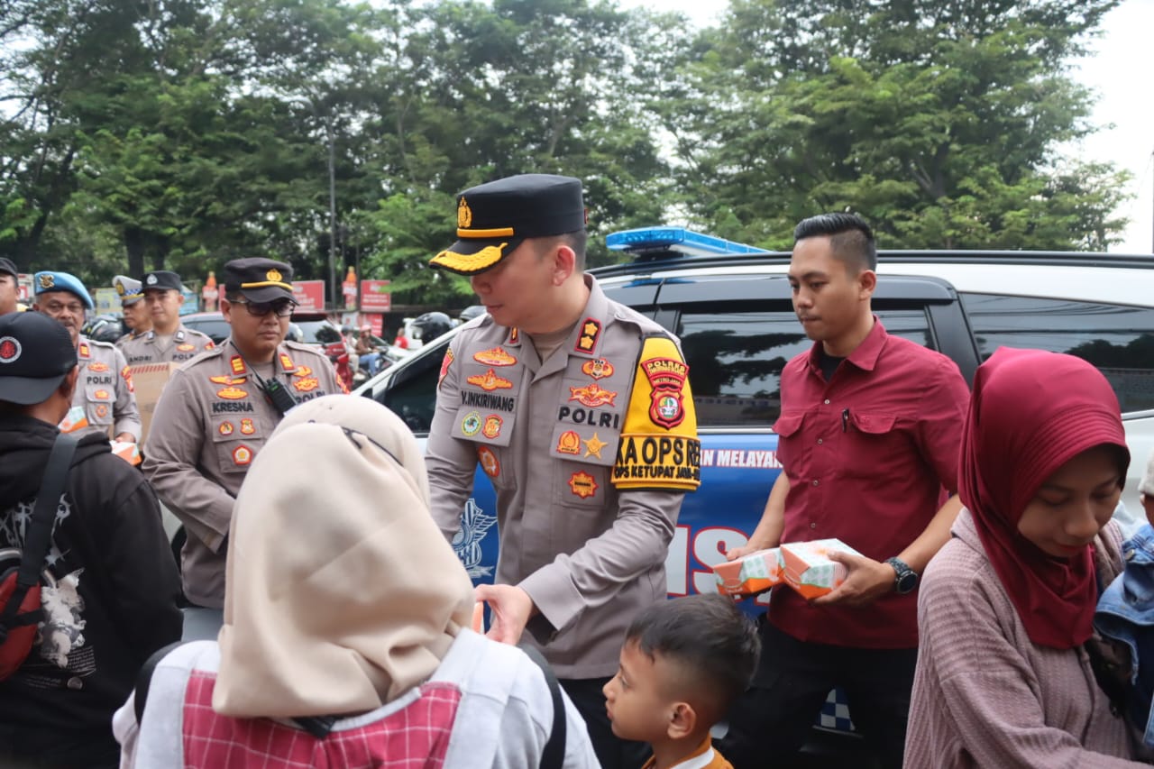 Selain melakukan pengecekan, Kapolres juga membagikan takjil kepada para pemudik untuk berbuka puasa.